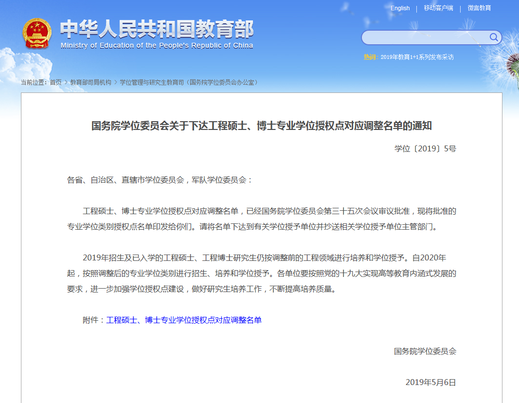 此外,根據(jù)國務(wù)院學位委員會《關(guān)于下達工程碩士、博士專業(yè)學位授權(quán)點對應(yīng)調(diào)整名單的通知》,我校工程碩士調(diào)整為電子信息專業(yè)碩士。