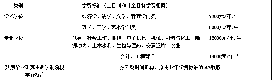 (二)學(xué)費(fèi)標(biāo)準(zhǔn)嚴(yán)格按照《關(guān)于繼續(xù)執(zhí)行我省研究生教育收費(fèi)政策及有關(guān)問題的通知》(川發(fā)改價(jià)格【2019】357號(hào))執(zhí)行(見下表):