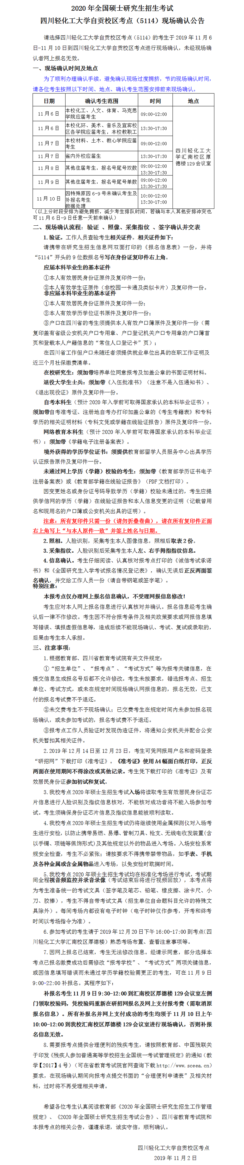 現(xiàn)場確認(rèn)是考試前最后一次確定大家的信息是否有錯,這道關(guān)卡過去了,大家就真的沒有問題可以等著考試了。今天小編整理了“2020考研現(xiàn)場確認(rèn)時間:四川輕化工大學(xué)(自貢校區(qū))于11月6-10號現(xiàn)場確認(rèn)另附所需材料”的相關(guān)內(nèi)容!請在該考點(diǎn)考試的同學(xué)們仔細(xì)查看。