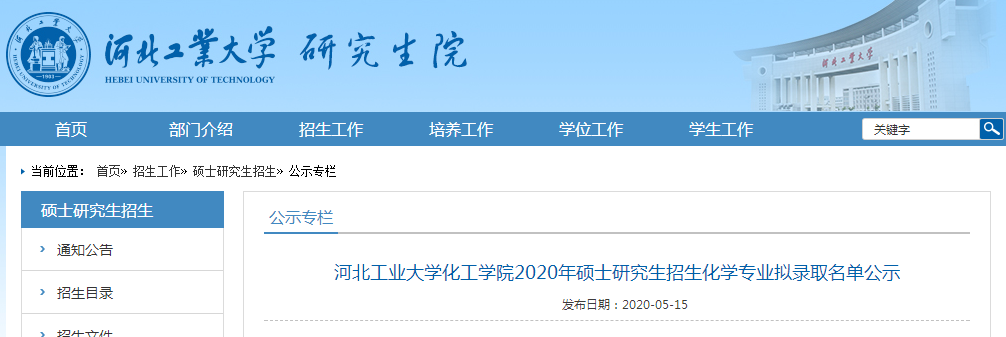 公示內(nèi)容:河北工業(yè)大學(xué)化工學(xué)院2020年碩士研究生招生化學(xué)專業(yè)擬錄取名單