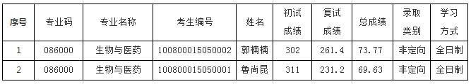 錄取專(zhuān)業(yè):086000生物與醫(yī)藥