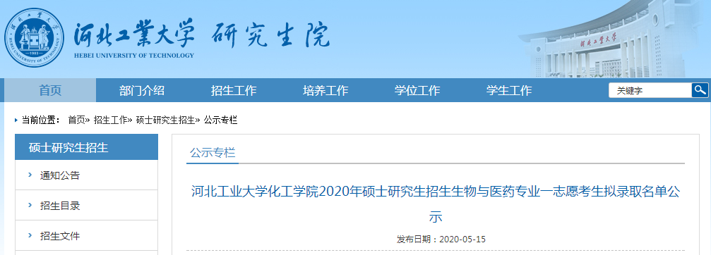 公示內(nèi)容:河北工業(yè)大學(xué)化工學(xué)院2020年碩士研究生招生生物與醫(yī)藥專(zhuān)業(yè)一志愿考生擬錄取名單