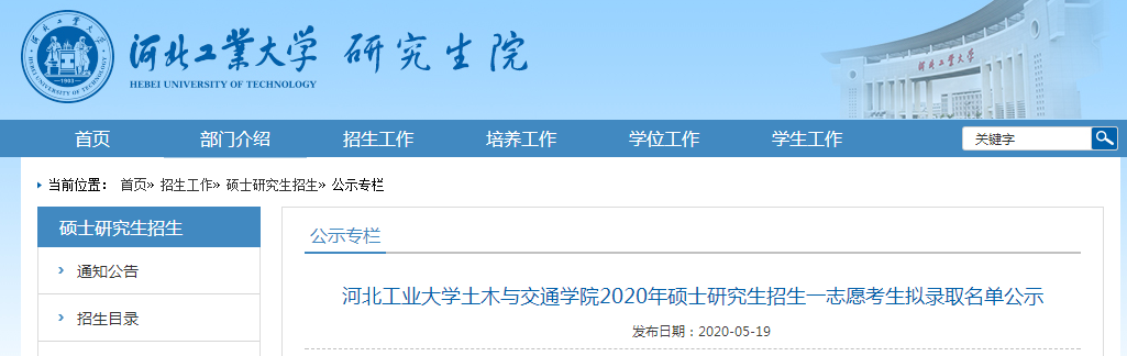 公示內(nèi)容:河北工業(yè)大學土木與交通學院2020年碩士研究生招生一志愿考生擬錄取名單