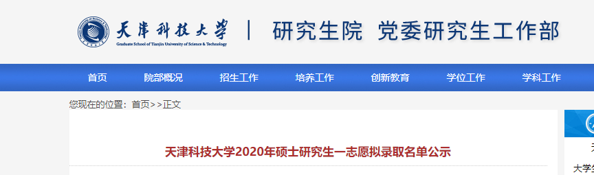 原標題:天津科技大學2020年碩士研究生一志愿擬錄取名單公示