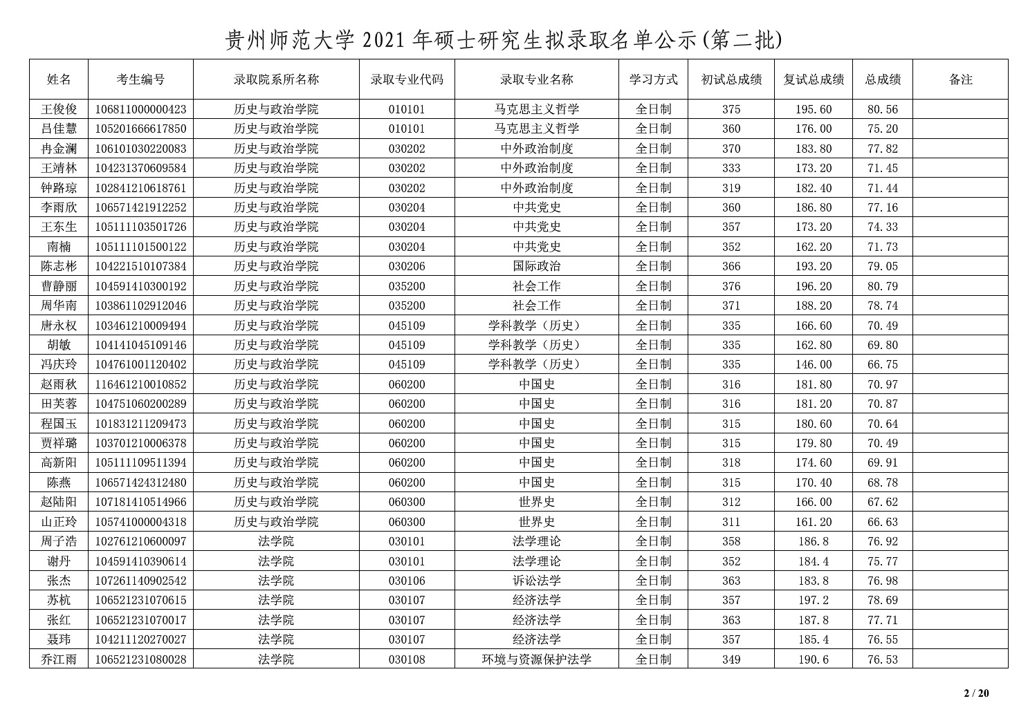 原文標(biāo)題:貴州師范大學(xué)2021年碩士研究生擬錄取名單公示(第二批)