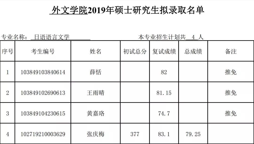 2019廈門大學(xué)最新院系專業(yè)碩士研究生擬錄取名單
