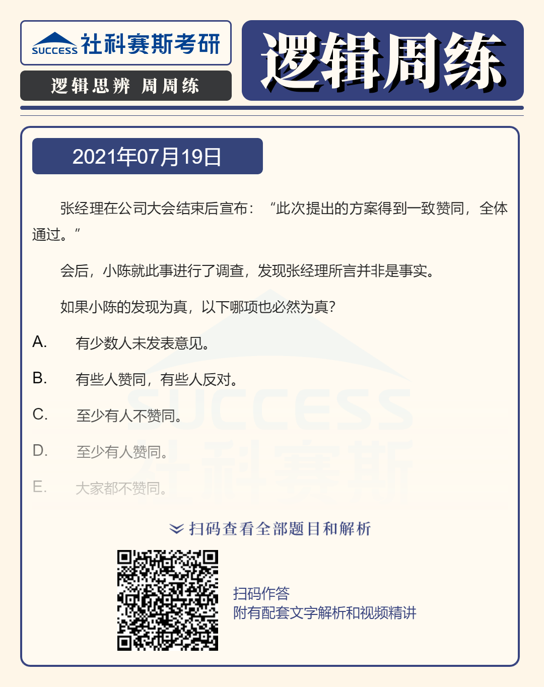 邏輯專項練習(xí):7月19日邏輯專項練習(xí)及答案