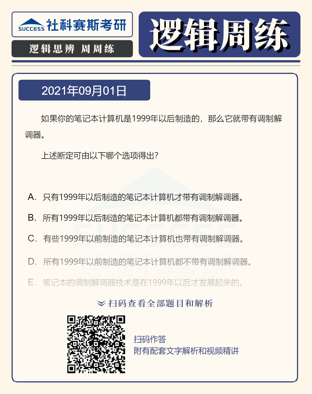 邏輯思辨周周練,考研邏輯專項練習,攻克邏輯難關!今天社科賽斯考研網(wǎng)小編整理了“邏輯專項練習:9月1日邏輯專項練習及答案”,希望能對廣大考生有所幫助!