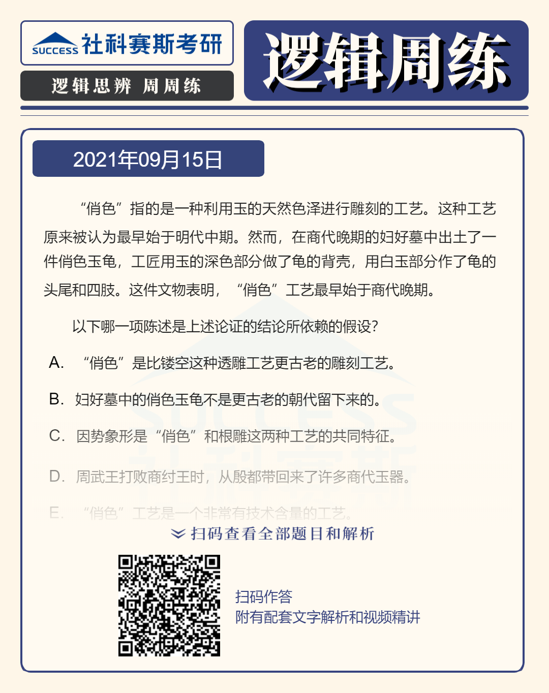 以上就是社科賽斯考研網(wǎng)小編為大家整理邏輯專項(xiàng)練習(xí):9月15日邏輯專項(xiàng)練習(xí)及答案的全部?jī)?nèi)容,希望各位考生堅(jiān)持利用起來(lái),想要獲取更多內(nèi)容請(qǐng)持續(xù)關(guān)注社科賽斯考研網(wǎng)。