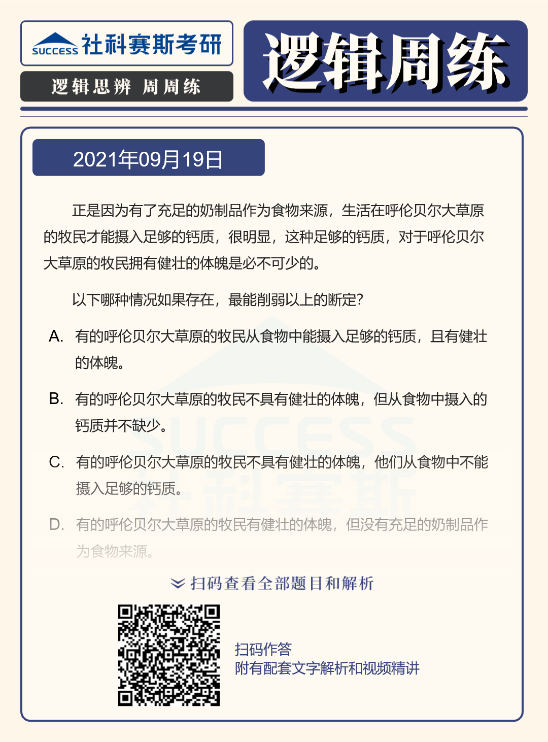 以上就是社科賽斯考研網(wǎng)小編為大家整理邏輯專項(xiàng)練習(xí):9月19日邏輯專項(xiàng)練習(xí)及答案的全部?jī)?nèi)容,希望各位考生堅(jiān)持利用起來,想要獲取更多內(nèi)容請(qǐng)持續(xù)關(guān)注社科賽斯考研網(wǎng)。