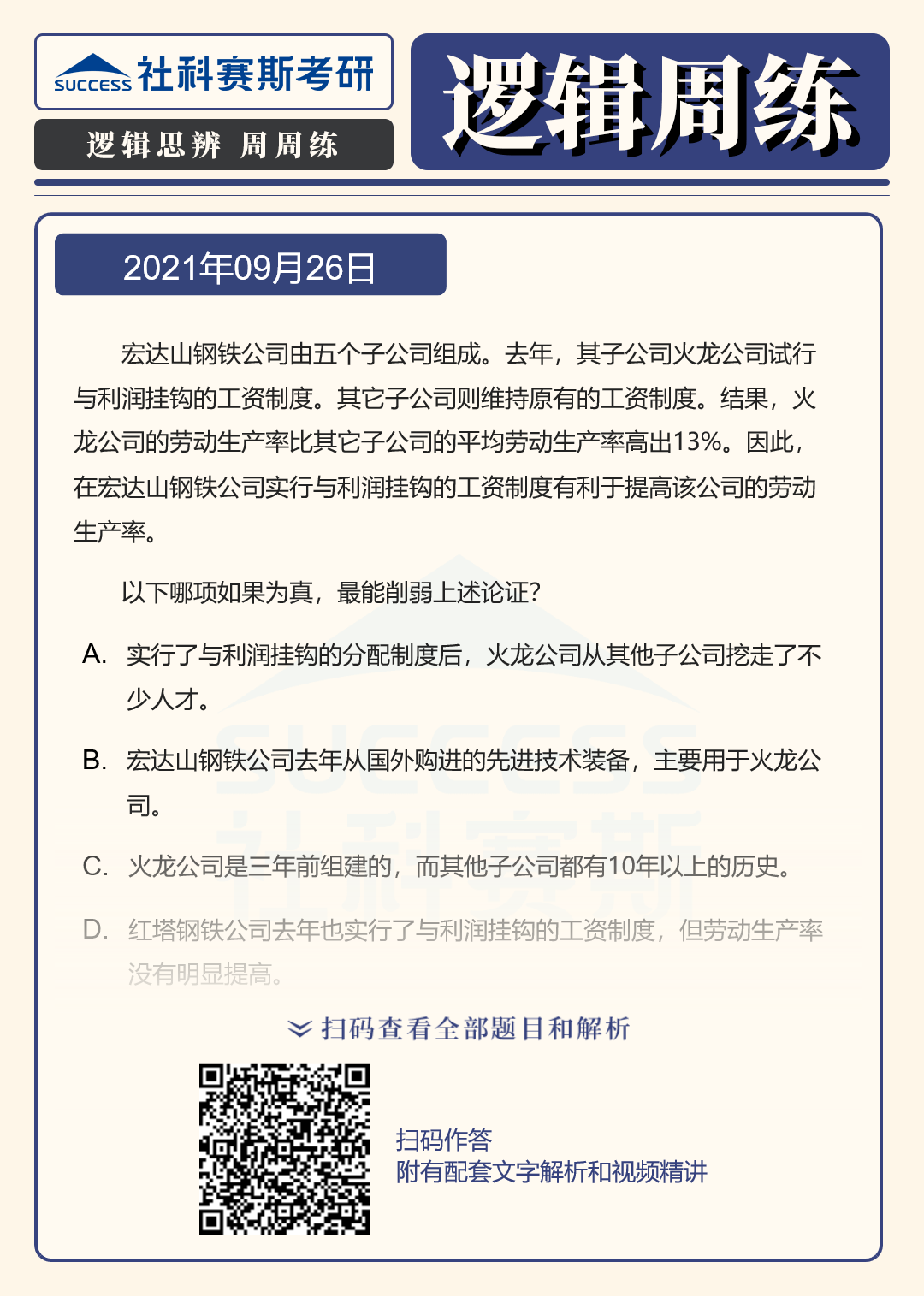 以上就是社科賽斯考研網(wǎng)小編為大家整理邏輯專項(xiàng)練習(xí):9月26日邏輯專項(xiàng)練習(xí)及答案的全部?jī)?nèi)容,希望各位考生堅(jiān)持利用起來,想要獲取更多內(nèi)容請(qǐng)持續(xù)關(guān)注社科賽斯考研網(wǎng)。