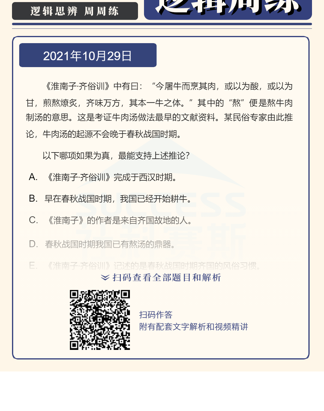 以上就是社科賽斯考研網(wǎng)小編為大家整理邏輯專項(xiàng)練習(xí):10月29日邏輯專項(xiàng)練習(xí)及答案的全部?jī)?nèi)容,希望各位考生堅(jiān)持利用起來(lái),想要獲取更多內(nèi)容請(qǐng)持續(xù)關(guān)注社科賽斯考研網(wǎng)。