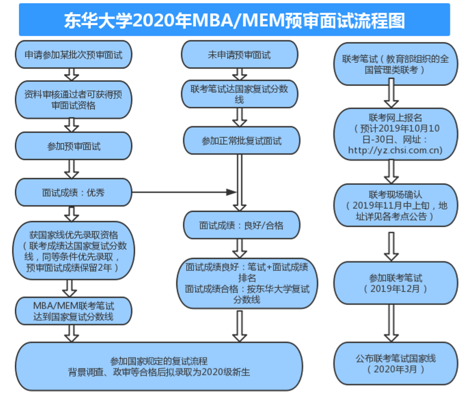 三、東華大學2020年MBA/MEM具體報名及預(yù)審面試時間安排如下:
