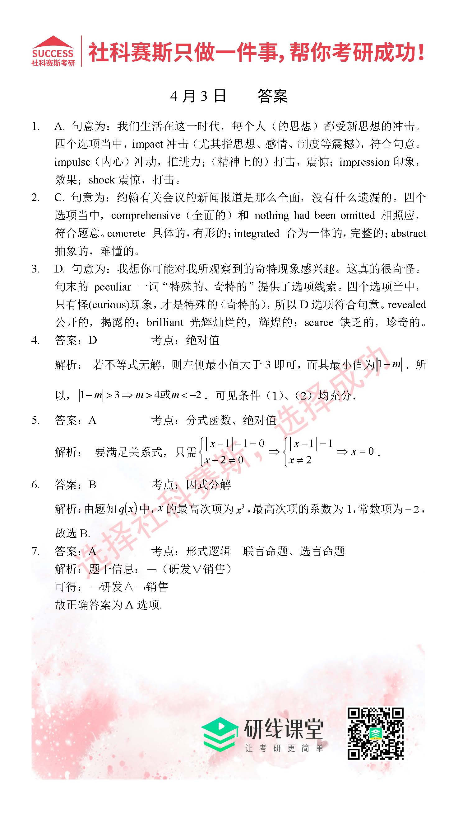 當前位置: 聯(lián)考綜合 > 模擬試題 > 2021管理類聯(lián)考4月3日每日一練及答案