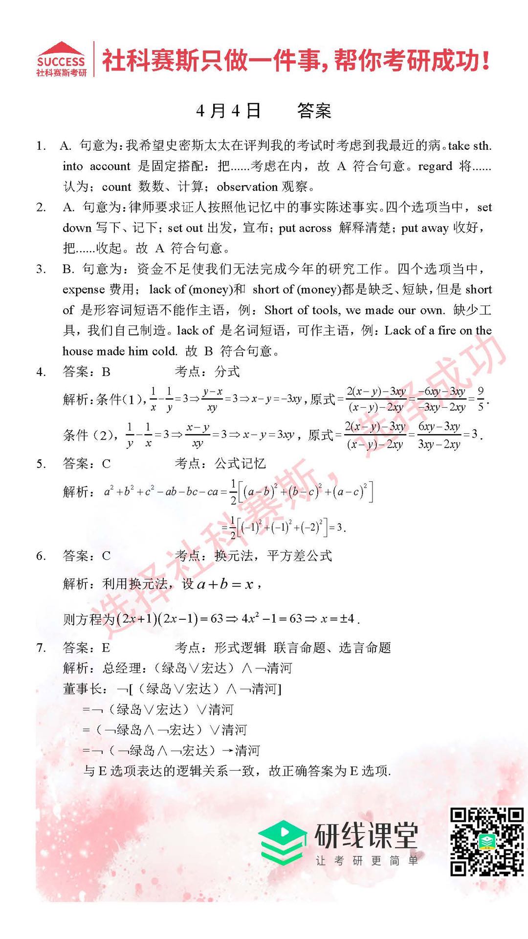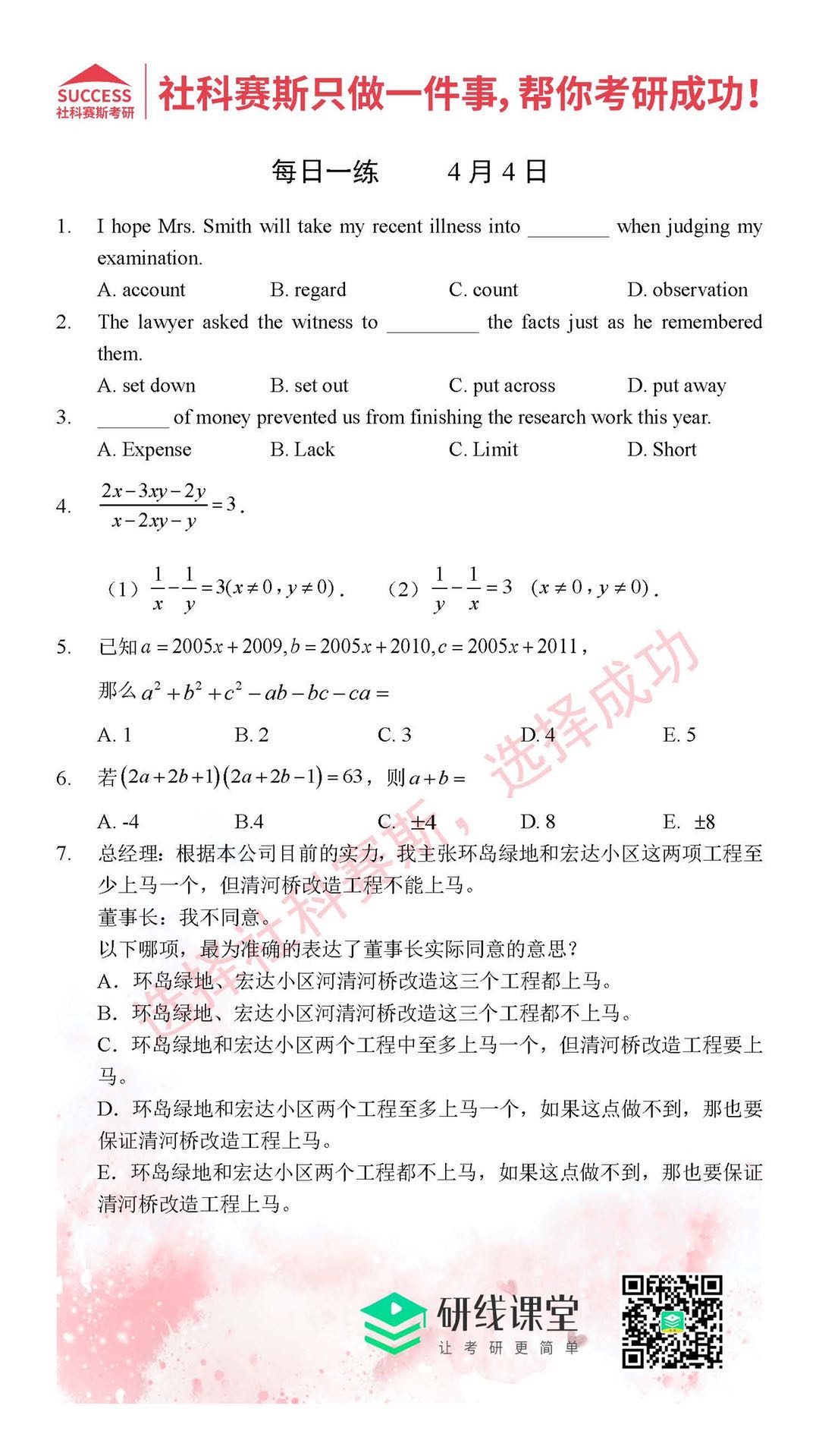 當(dāng)前位置: 聯(lián)考綜合 > 模擬試題 > 2021管理類聯(lián)考4月4日每日一練及答案