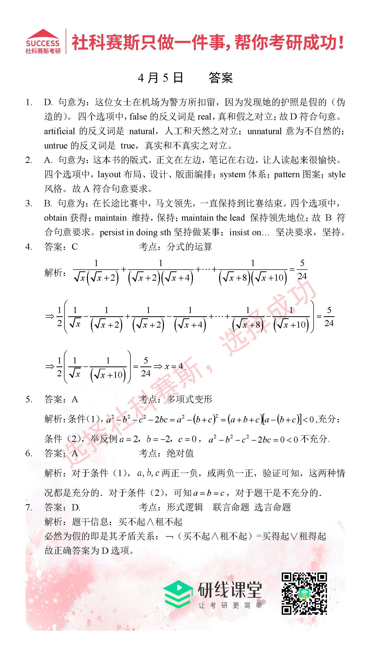 當(dāng)前位置: 聯(lián)考綜合 > 模擬試題 > 2021管理類聯(lián)考4月5日每日一練及答案