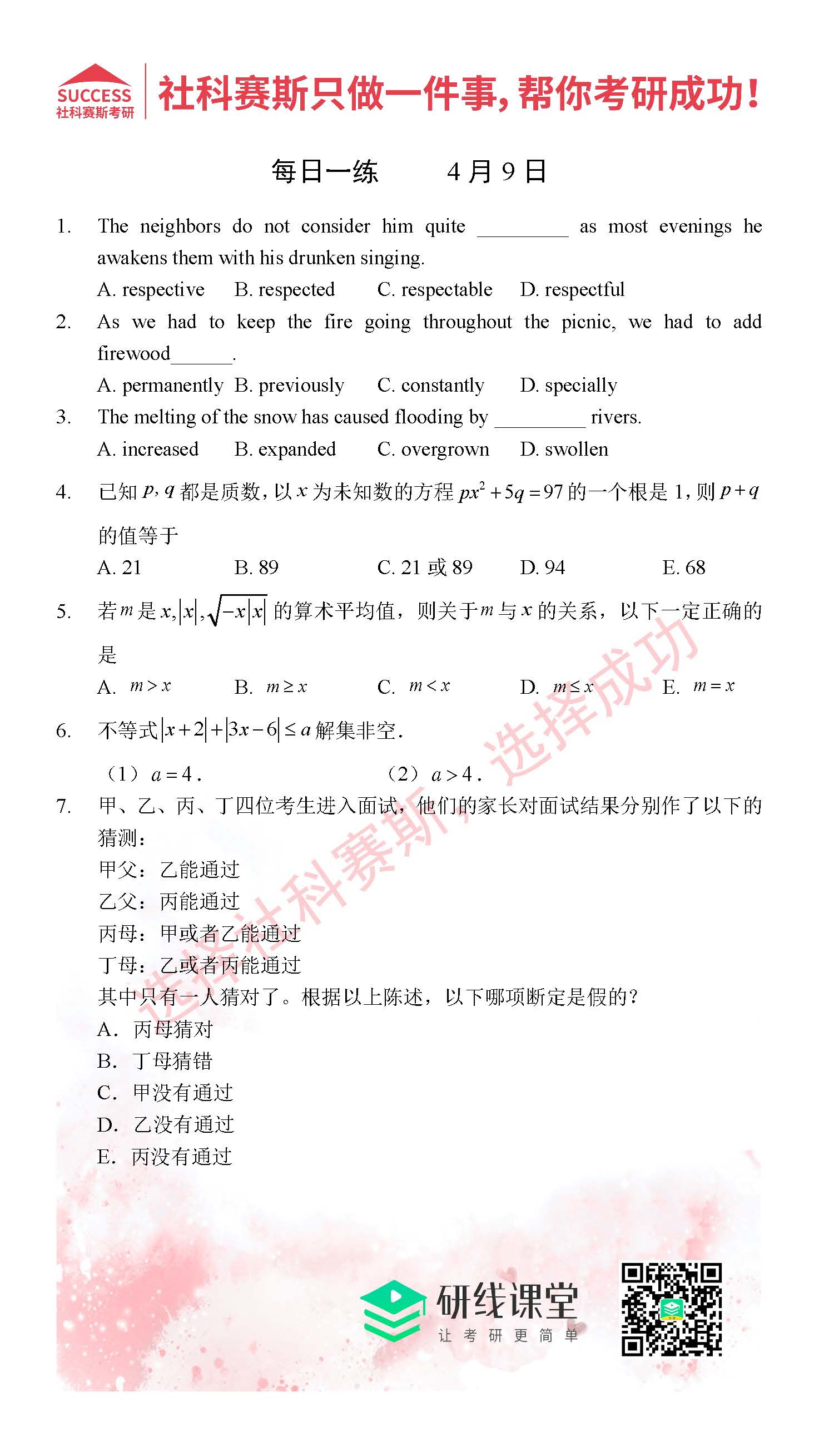 當(dāng)前位置: 聯(lián)考綜合 > 模擬試題 > 2021管理類聯(lián)考4月9日每日一練及答案