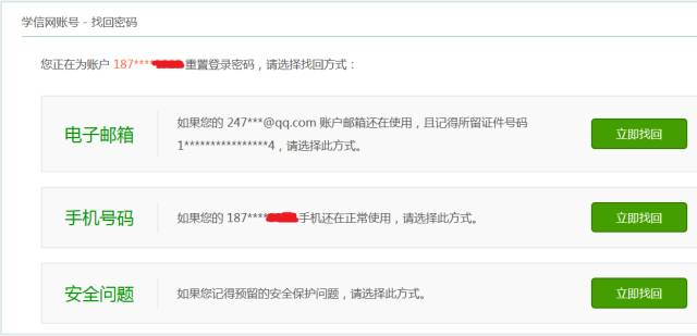 當(dāng)時(shí)的手機(jī)號(hào)如果還在使用那就是最便捷的找回方式,但畢業(yè)幾年很多同學(xué)已經(jīng)換號(hào); 注冊(cè)時(shí)是選擇三個(gè)密保問題,但找回時(shí)并不會(huì)說明您當(dāng)時(shí)回答的是哪三個(gè),所以通過安全問題找回密碼并不容易。 3、密碼無法找回 嘗試各種方式依舊無法找回,重新注冊(cè)即可 重新注冊(cè)注意事項(xiàng): ①無法找回先前密碼肯定是當(dāng)時(shí)號(hào)碼停用,目前使用新號(hào),用新手機(jī)號(hào)注冊(cè)即可; ②重新注冊(cè)賬號(hào)填寫郵箱時(shí)一定要使用之前注冊(cè)未使用的新郵箱并完成綁定,完成綁定是方便日后忘記密碼找回; ③兩次注冊(cè)都是實(shí)名并且本人身份證,所以重新注冊(cè)并不會(huì)造成信息丟失。 無論您是哪種情況,看完以上內(nèi)容想必都已解決您的問題——最后提醒大家,學(xué)信網(wǎng)賬號(hào)涉及到考研網(wǎng)報(bào)、學(xué)籍學(xué)歷查詢、四六級(jí)成績(jī)查詢、應(yīng)征入伍等服務(wù),用于登錄學(xué)信網(wǎng)各個(gè)服務(wù)平臺(tái),無論是首次注冊(cè)還是重新注冊(cè)的同學(xué)都要牢記密碼!