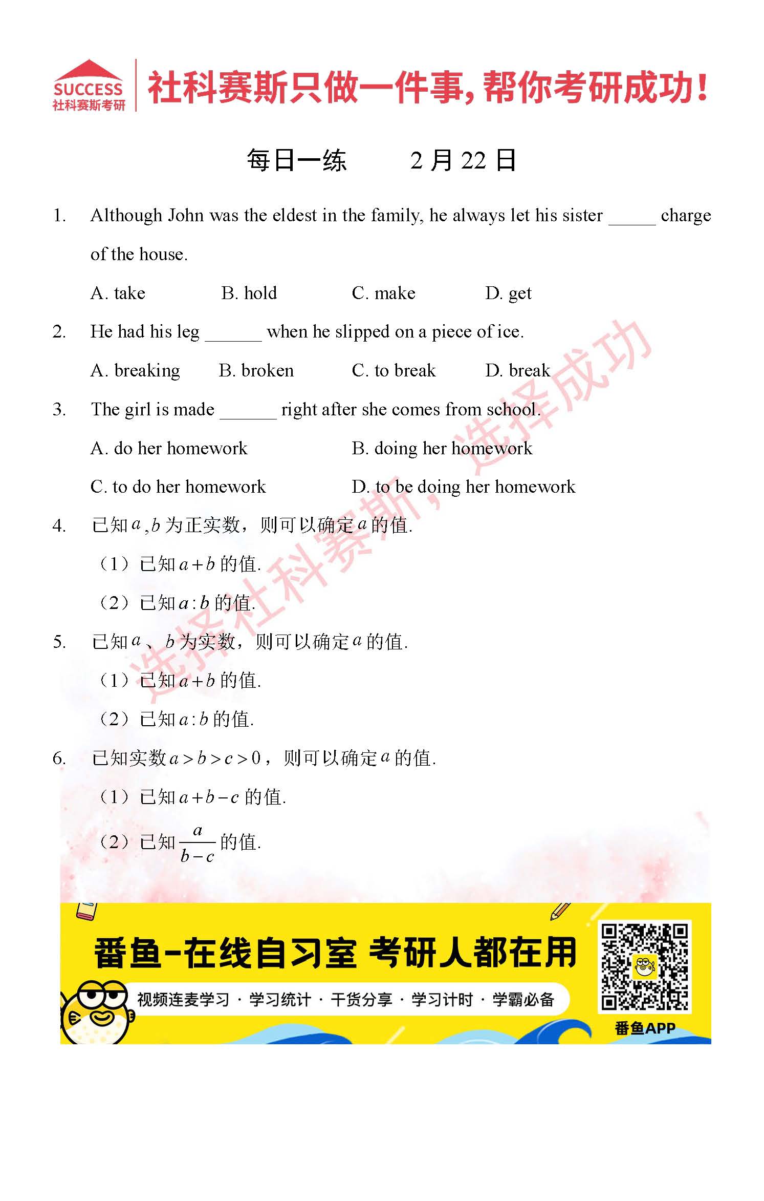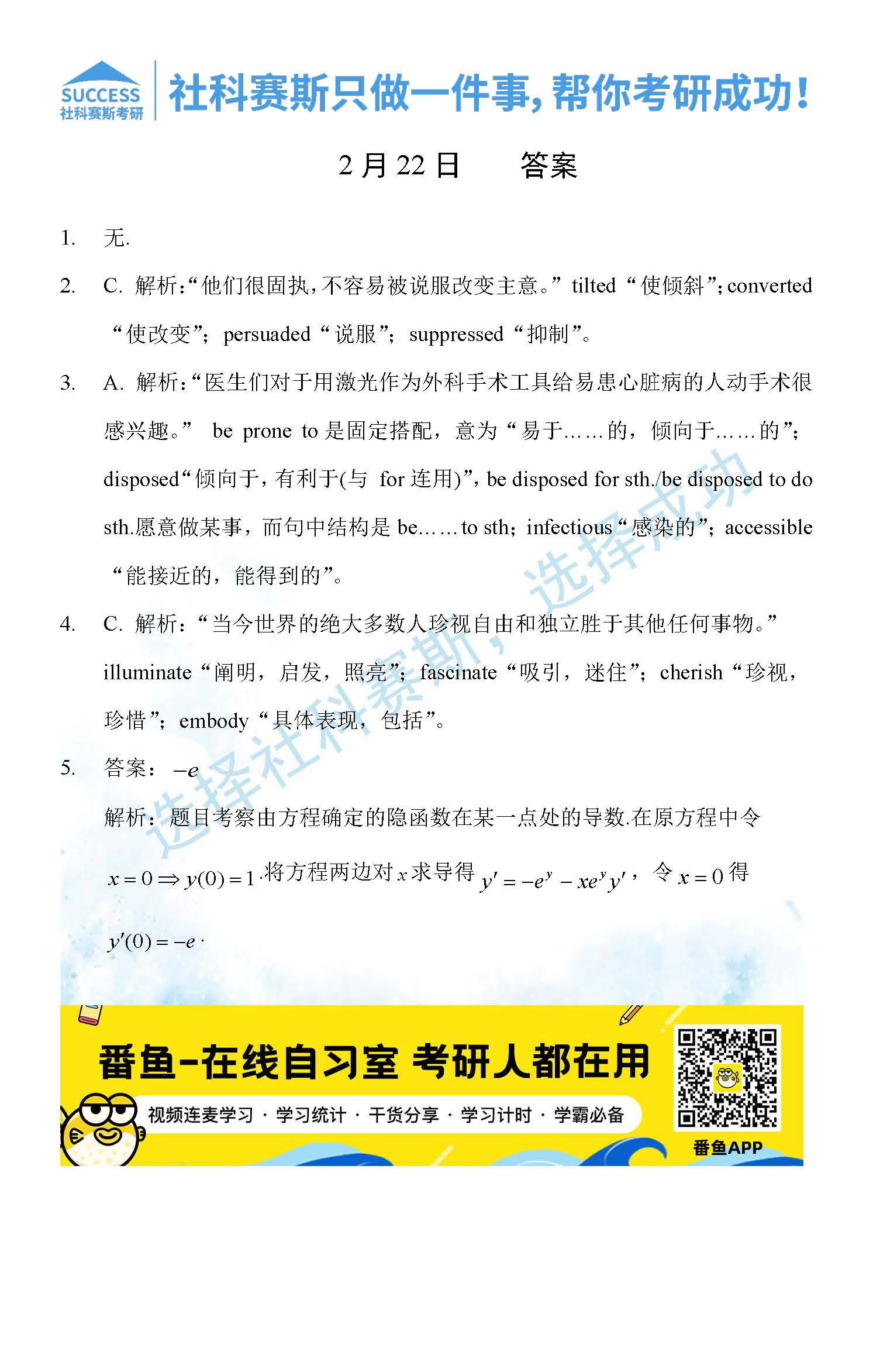 以上就是社科賽斯考研網(wǎng)小編為大家整理2022考研每日一練:2月22日每日一練及答案的全部內(nèi)容,希望各位考生堅持利用起來,更多每日一練內(nèi)容請持續(xù)關(guān)注社科賽斯考研網(wǎng)。