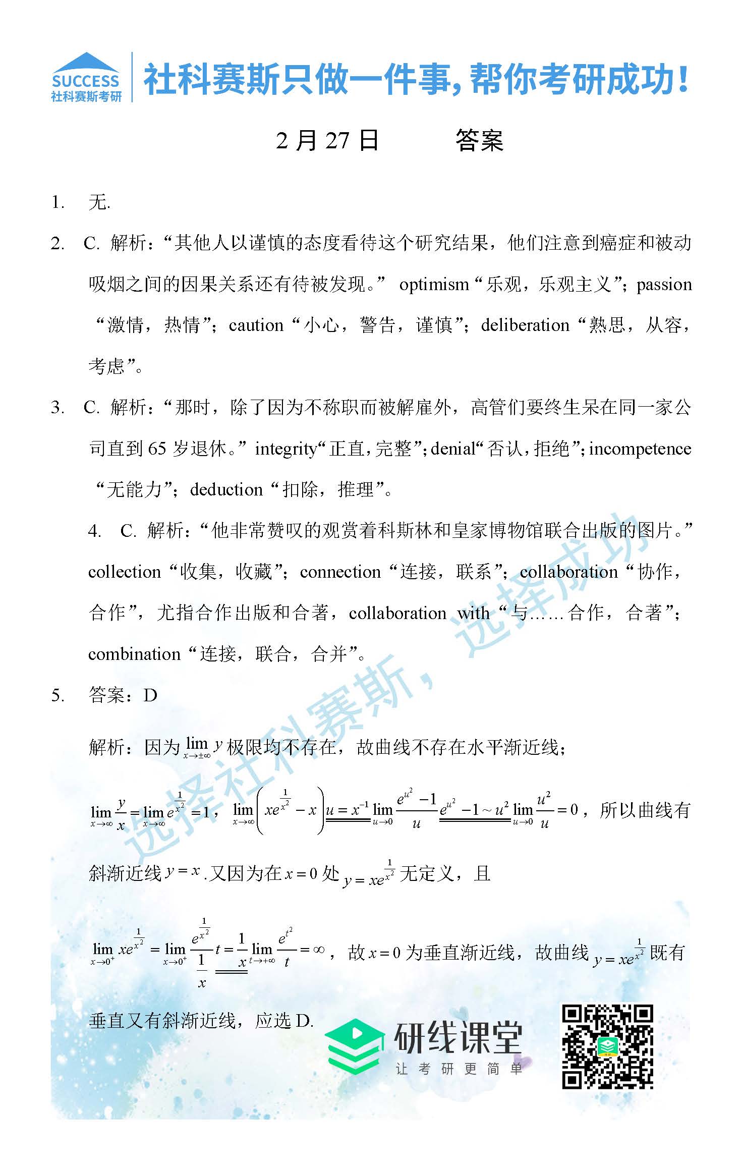 以上就是社科賽斯考研網(wǎng)小編為大家整理2022考研每日一練:2月27日每日一練及答案的全部內(nèi)容,希望各位考生堅(jiān)持利用起來,更多每日一練內(nèi)容請持續(xù)關(guān)注社科賽斯考研網(wǎng)。