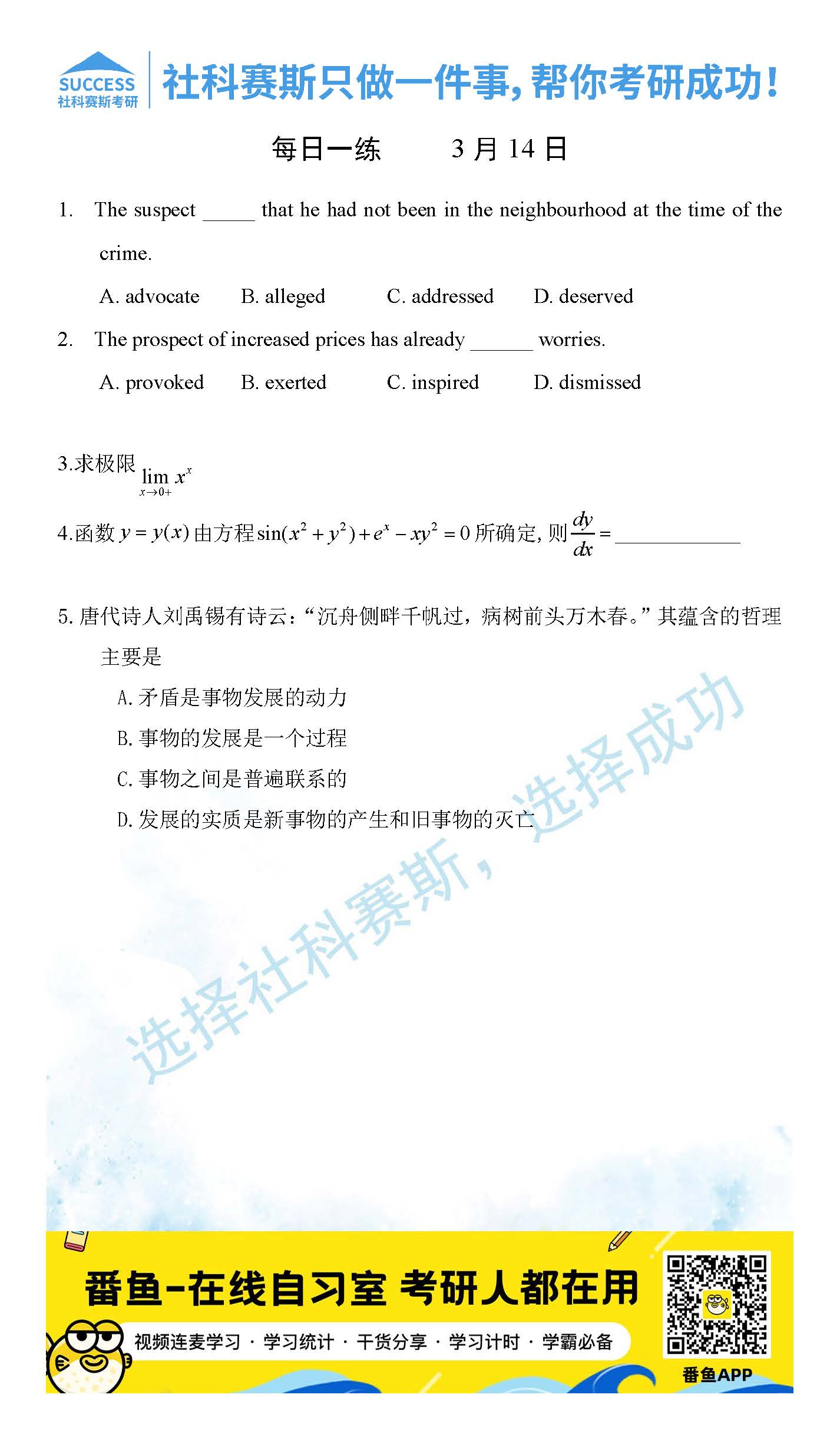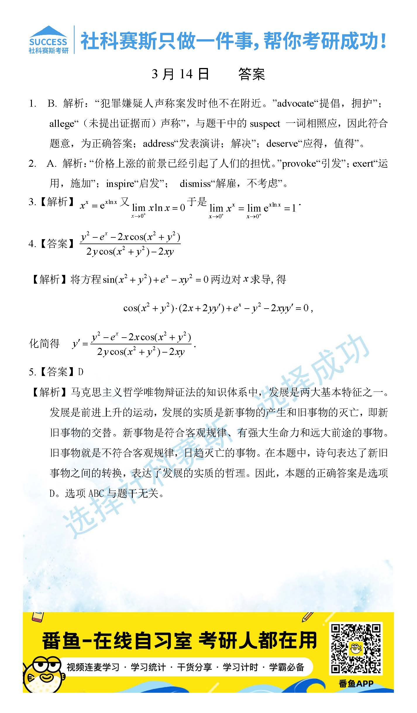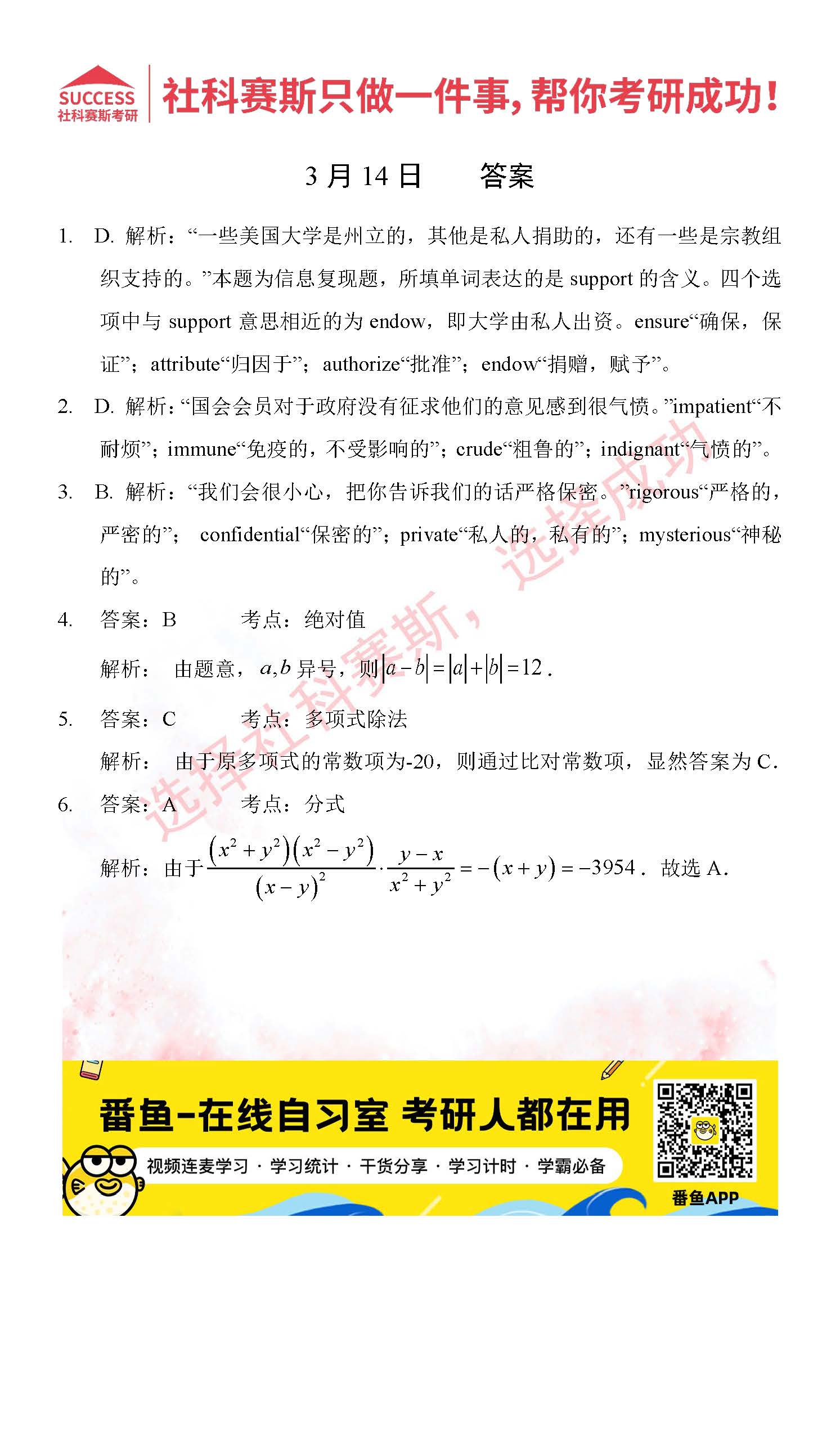 以上就是社科賽斯考研網小編為大家整理2022考研每日一練:3月14日管理類聯(lián)考每日一練及答案的全部內容,希望各位考生堅持利用起來,更多每日一練內容請持續(xù)關注社科賽斯考研網。