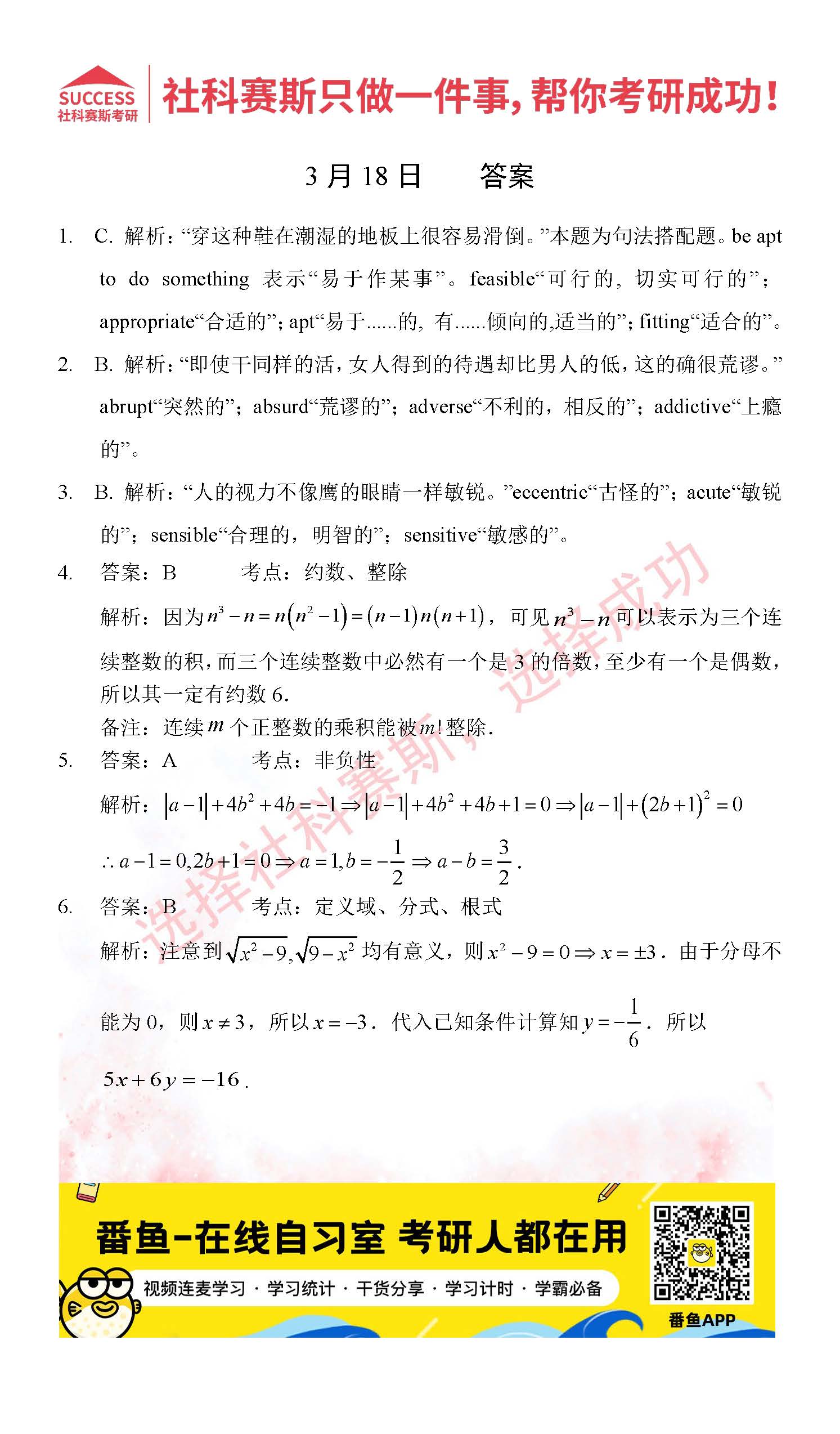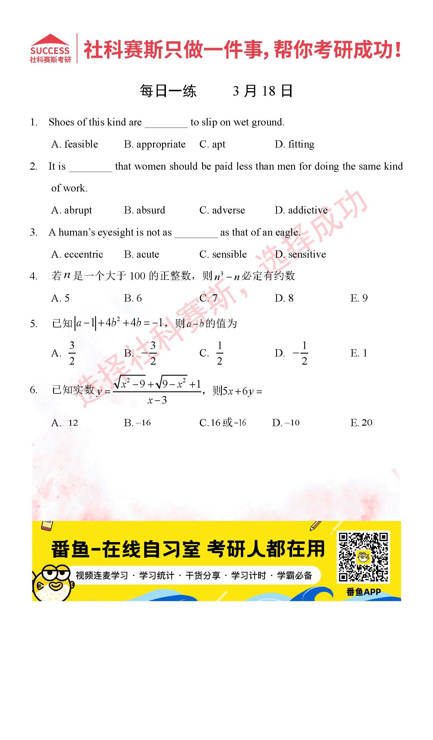 2022考研每日一練:3月18日管理類聯(lián)考每日一練及答案