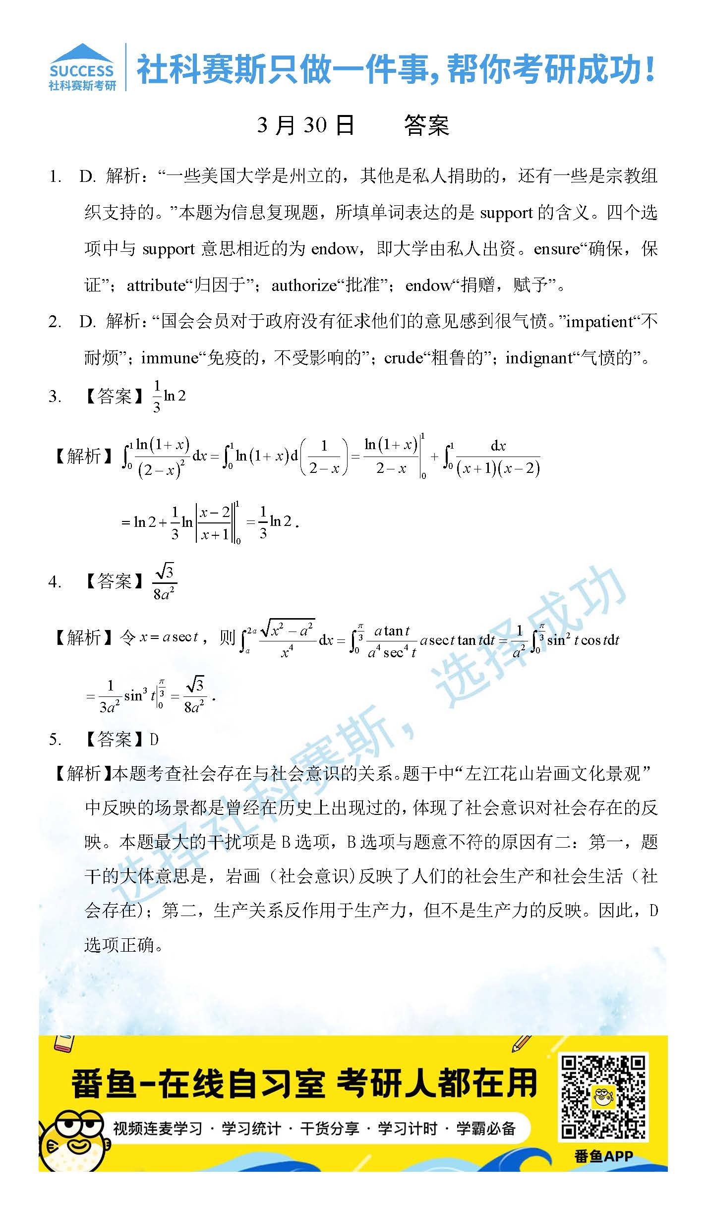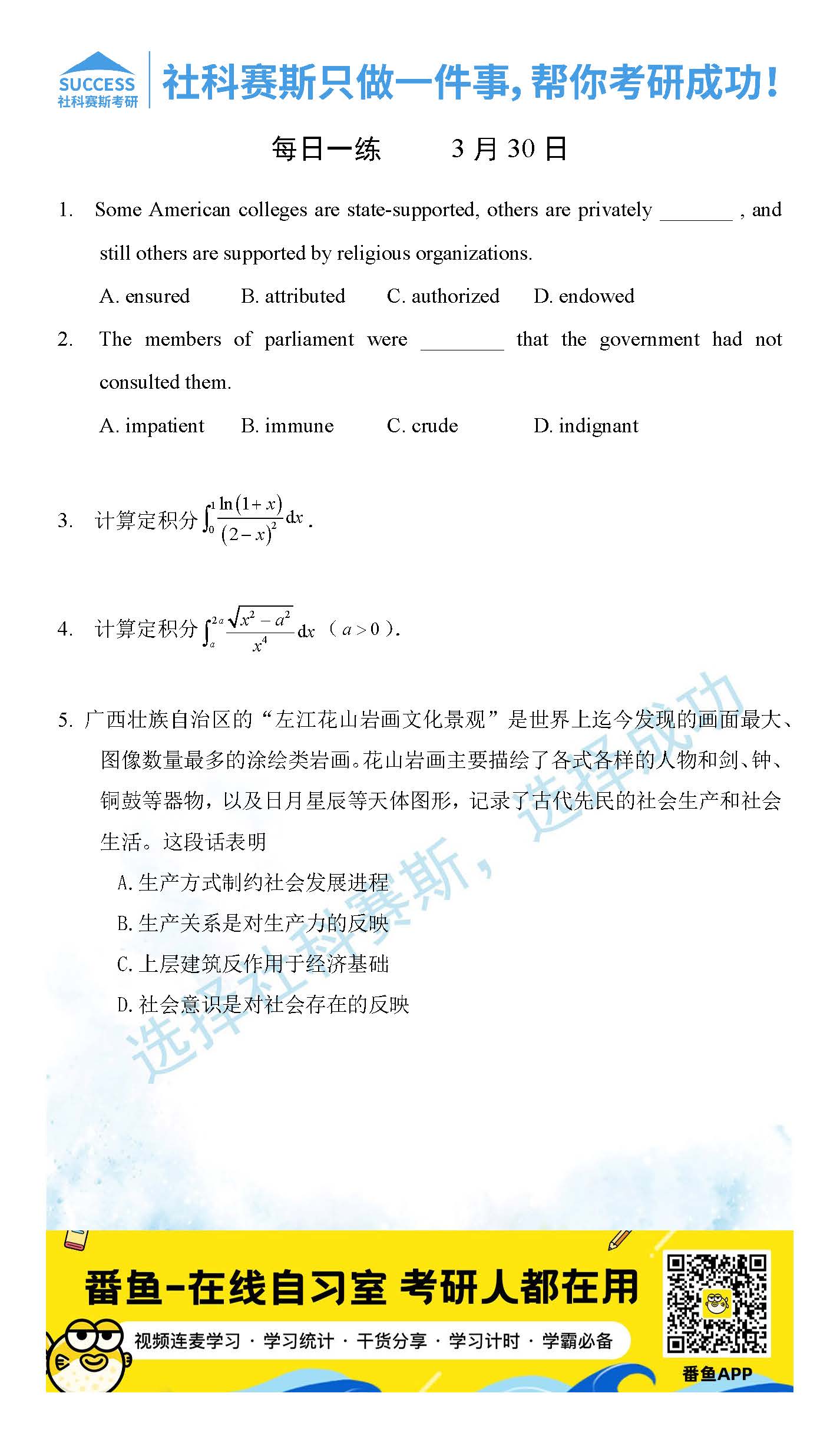 考研是一場(chǎng)持久戰(zhàn),保持良好的學(xué)習(xí)習(xí)慣,是能確保復(fù)習(xí)高效的關(guān)鍵。今天社科賽斯考研網(wǎng)小編整理了“2022考研每日一練:3月30日管理類聯(lián)考每日一練及答案”的內(nèi)容,希望能對(duì)廣大考生有所幫助。