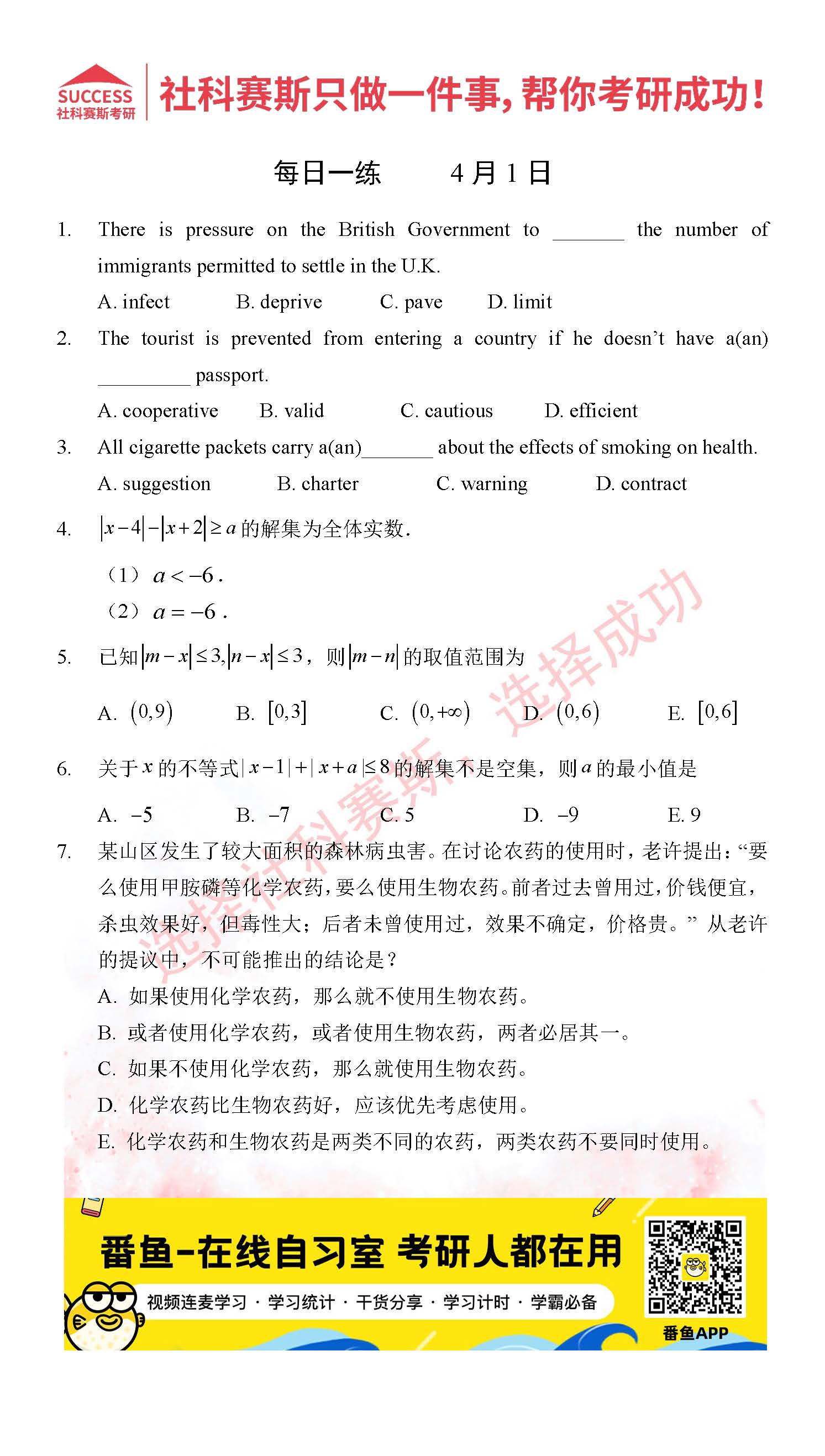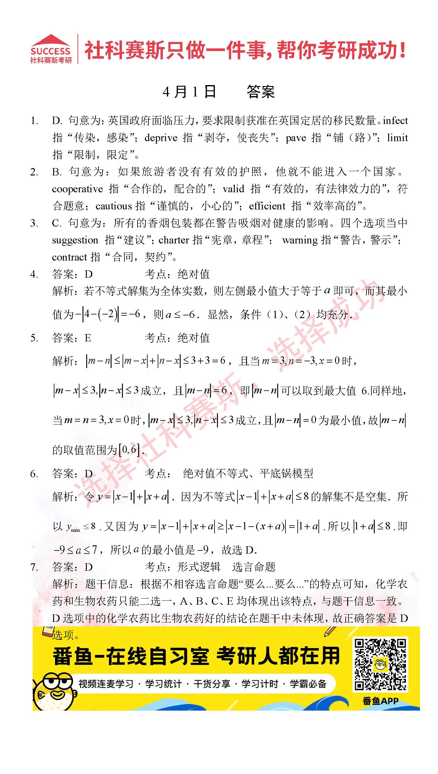 2022考研每日一練:4月1日管理類聯(lián)考每日一練及答案