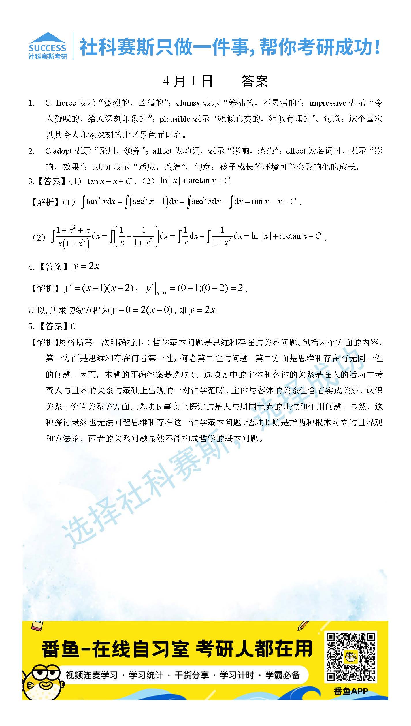 ?以上就是社科賽斯考研網(wǎng)小編為大家整理2022考研每日一練:4月1日管理類聯(lián)考每日一練及答案的全部?jī)?nèi)容,希望各位考生堅(jiān)持利用起來(lái),更多每日一練內(nèi)容請(qǐng)持續(xù)關(guān)注社科賽斯考研網(wǎng)。