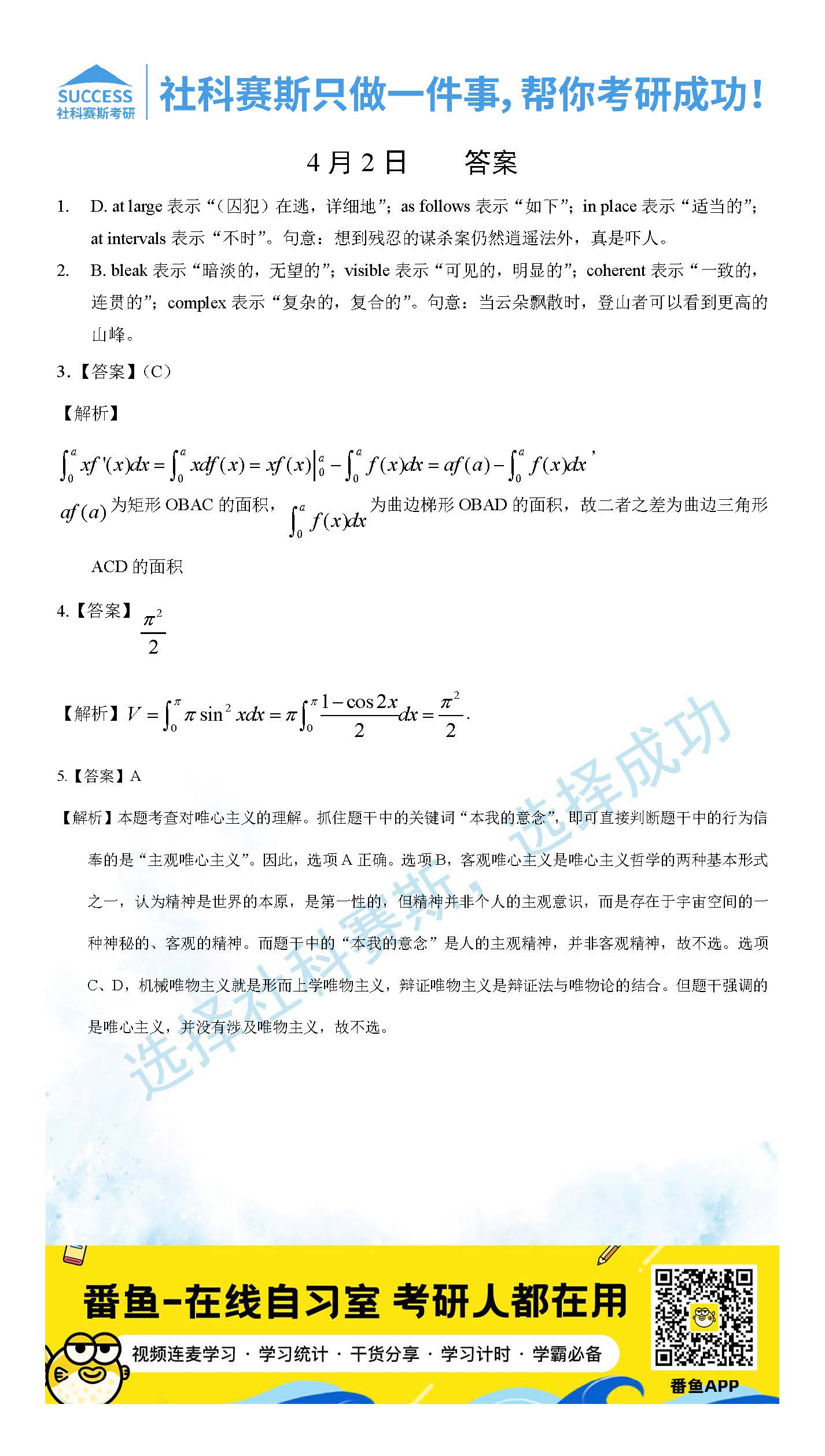 ?以上就是社科賽斯考研網(wǎng)小編為大家整理2022考研每日一練:4月2日管理類聯(lián)考每日一練及答案的全部內(nèi)容,希望各位考生堅(jiān)持利用起來,更多每日一練內(nèi)容請(qǐng)持續(xù)關(guān)注社科賽斯考研網(wǎng)。
