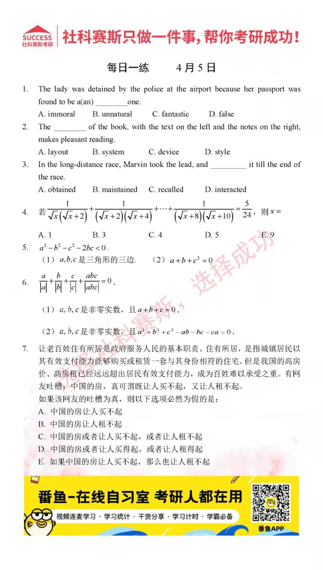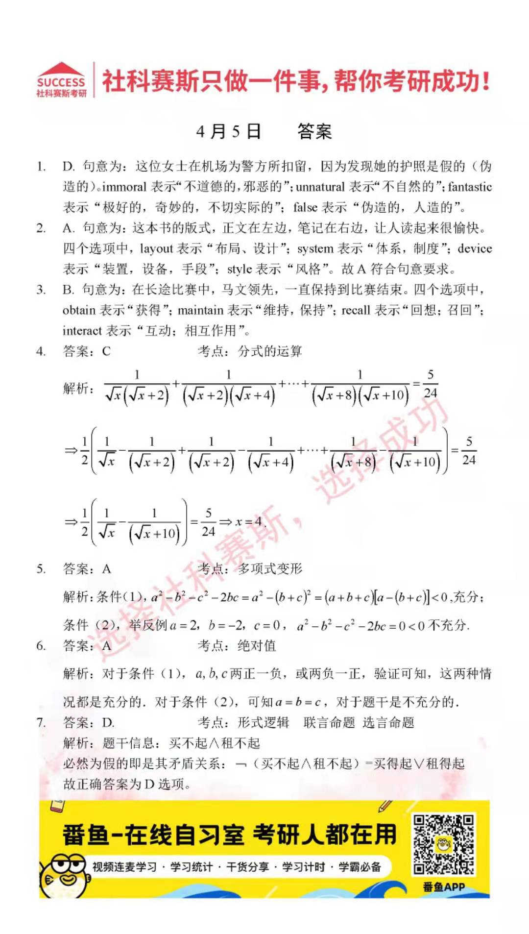 ?以上就是社科賽斯考研網(wǎng)小編為大家整理2022考研每日一練:4月5日管理類聯(lián)考每日一練及答案的全部內(nèi)容,希望各位考生堅持利用起來,更多每日一練內(nèi)容請持續(xù)關(guān)注社科賽斯考研網(wǎng)。
