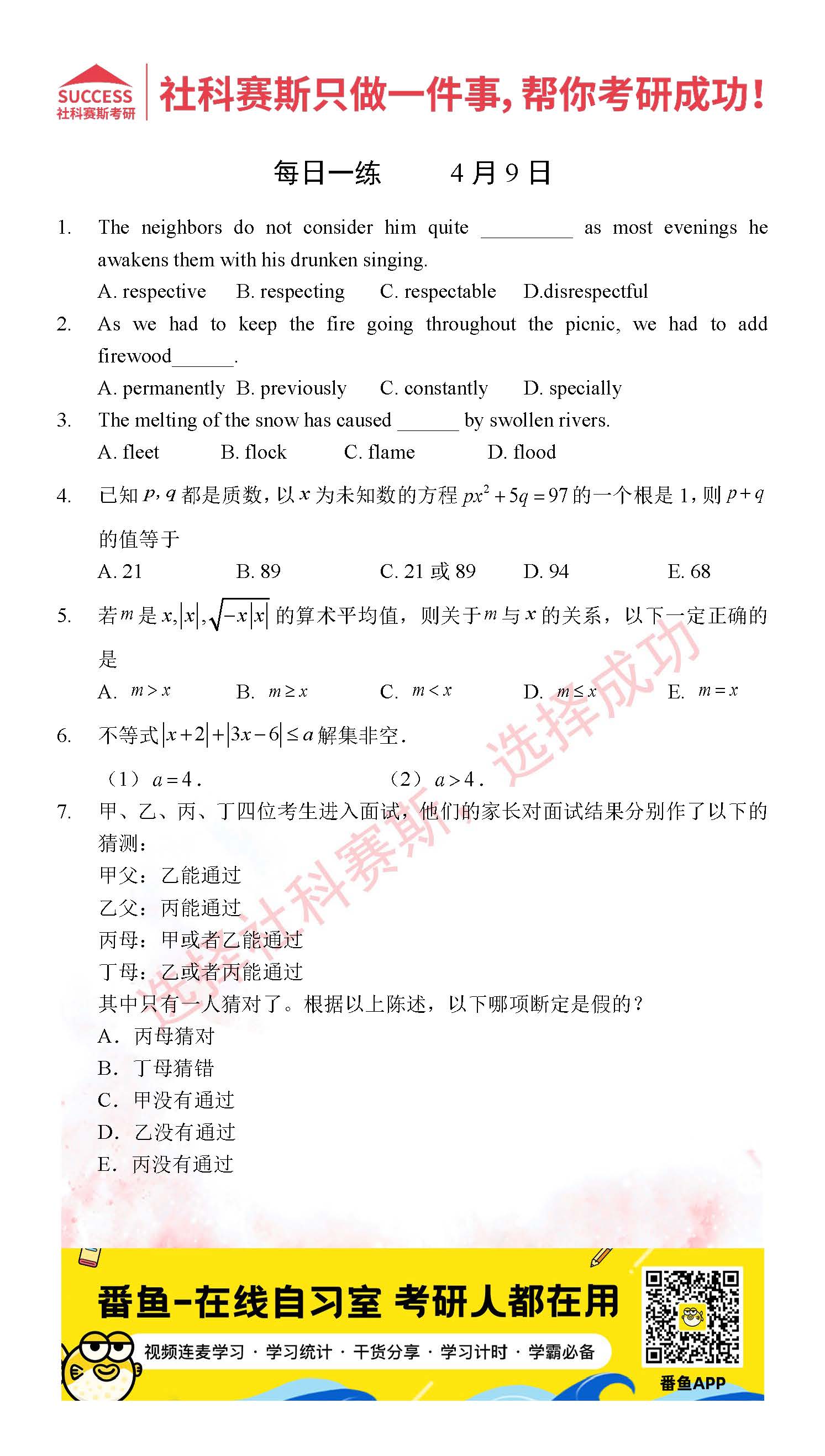 2022考研每日一練:4月9日管理類聯(lián)考每日一練及答案