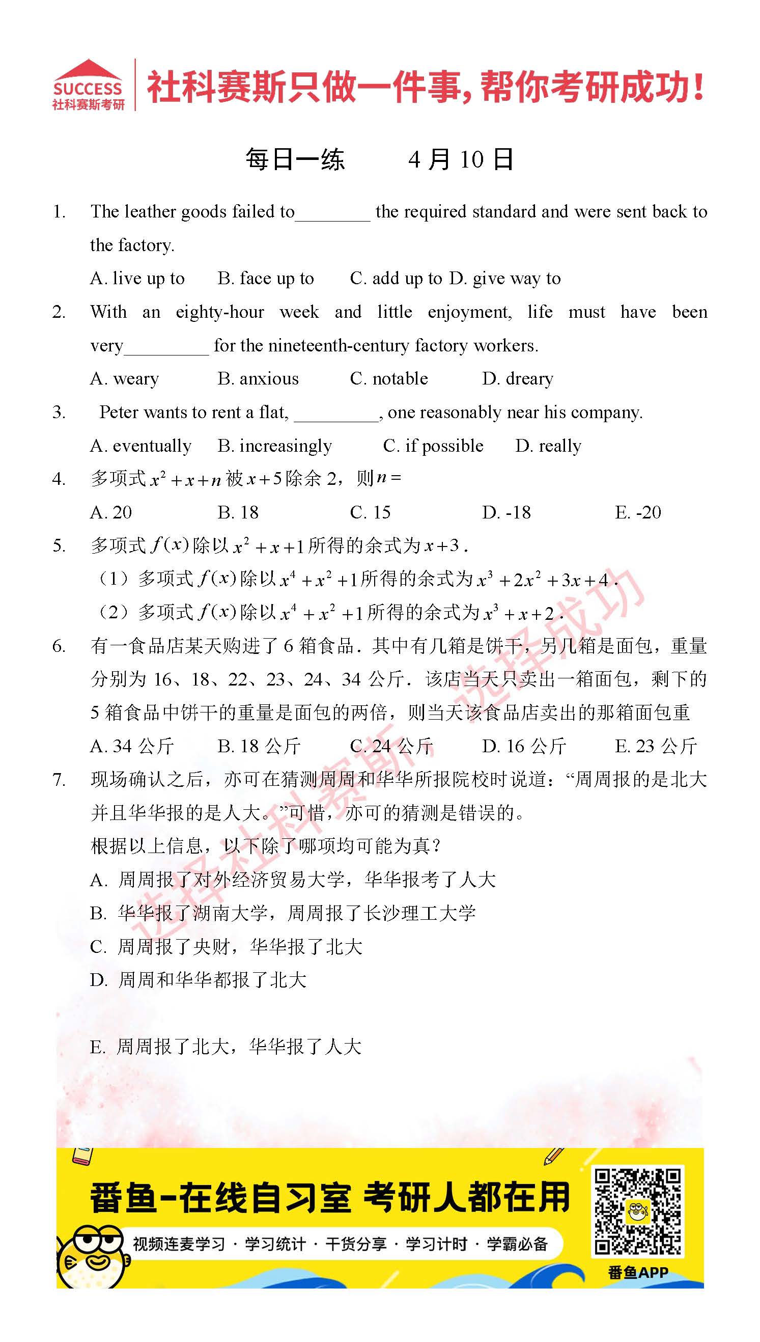 2022考研每日一練:4月10日管理類聯(lián)考每日一練及答案