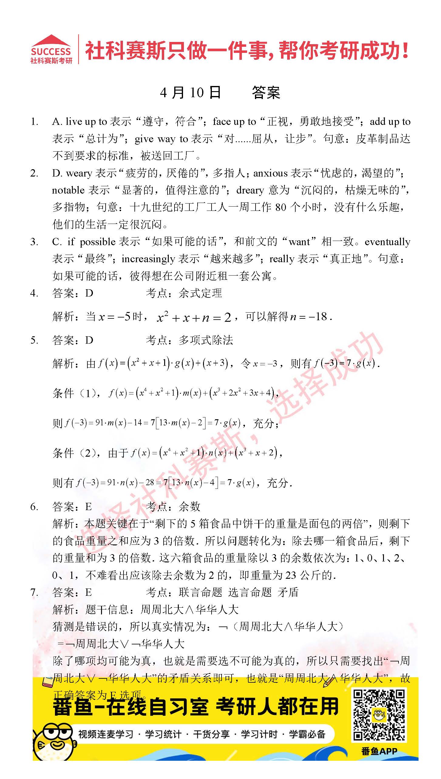 ?以上就是社科賽斯考研網小編為大家整理2022考研每日一練:4月10日管理類聯(lián)考每日一練及答案的全部內容,希望各位考生堅持利用起來,更多每日一練內容請持續(xù)關注社科賽斯考研網。