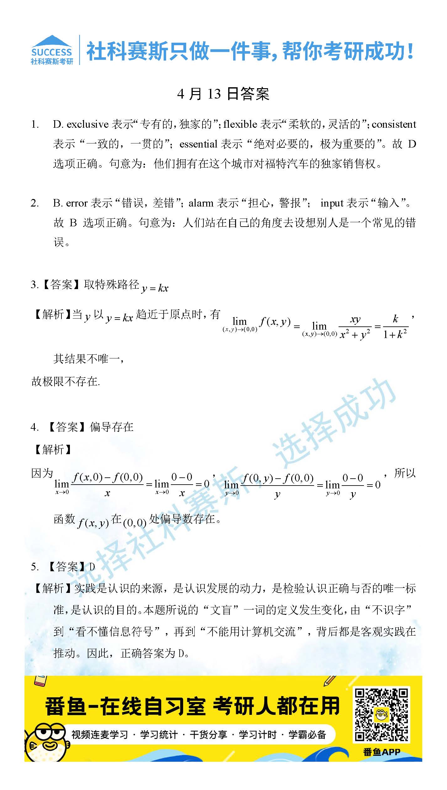 ?以上就是社科賽斯考研網(wǎng)小編為大家整理2022考研每日一練:4月13日管理類聯(lián)考每日一練及答案的全部?jī)?nèi)容,希望各位考生堅(jiān)持利用起來(lái),更多每日一練內(nèi)容請(qǐng)持續(xù)關(guān)注社科賽斯考研網(wǎng)。