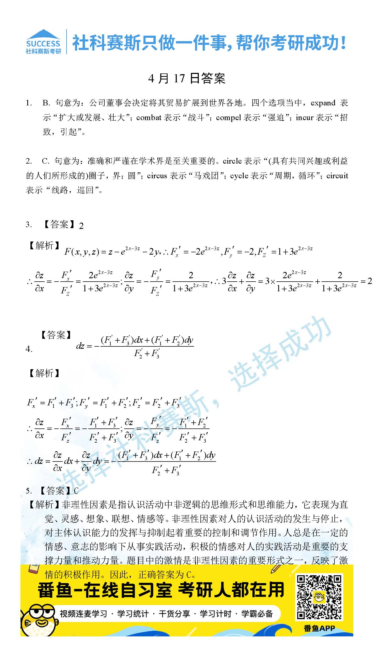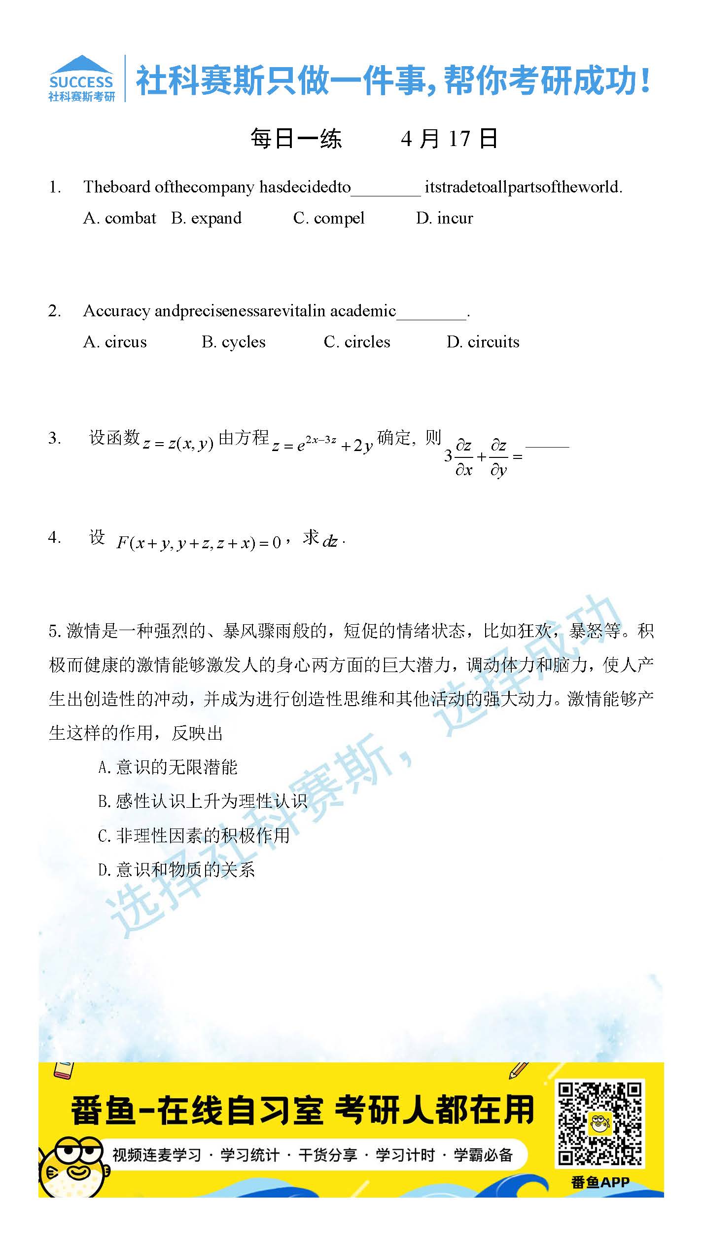 2022考研每日一練:4月17日管理類聯(lián)考每日一練及答案