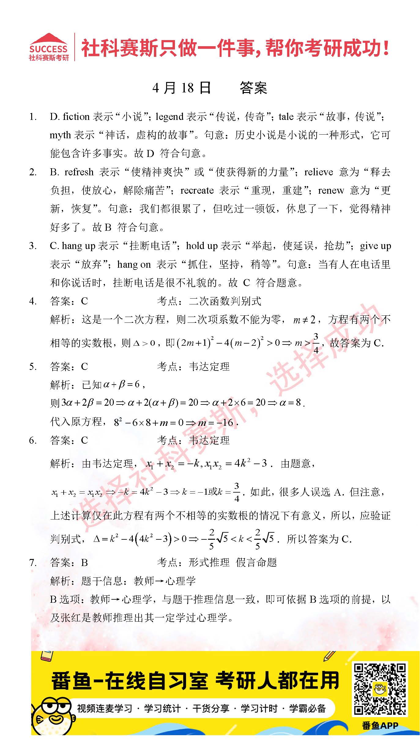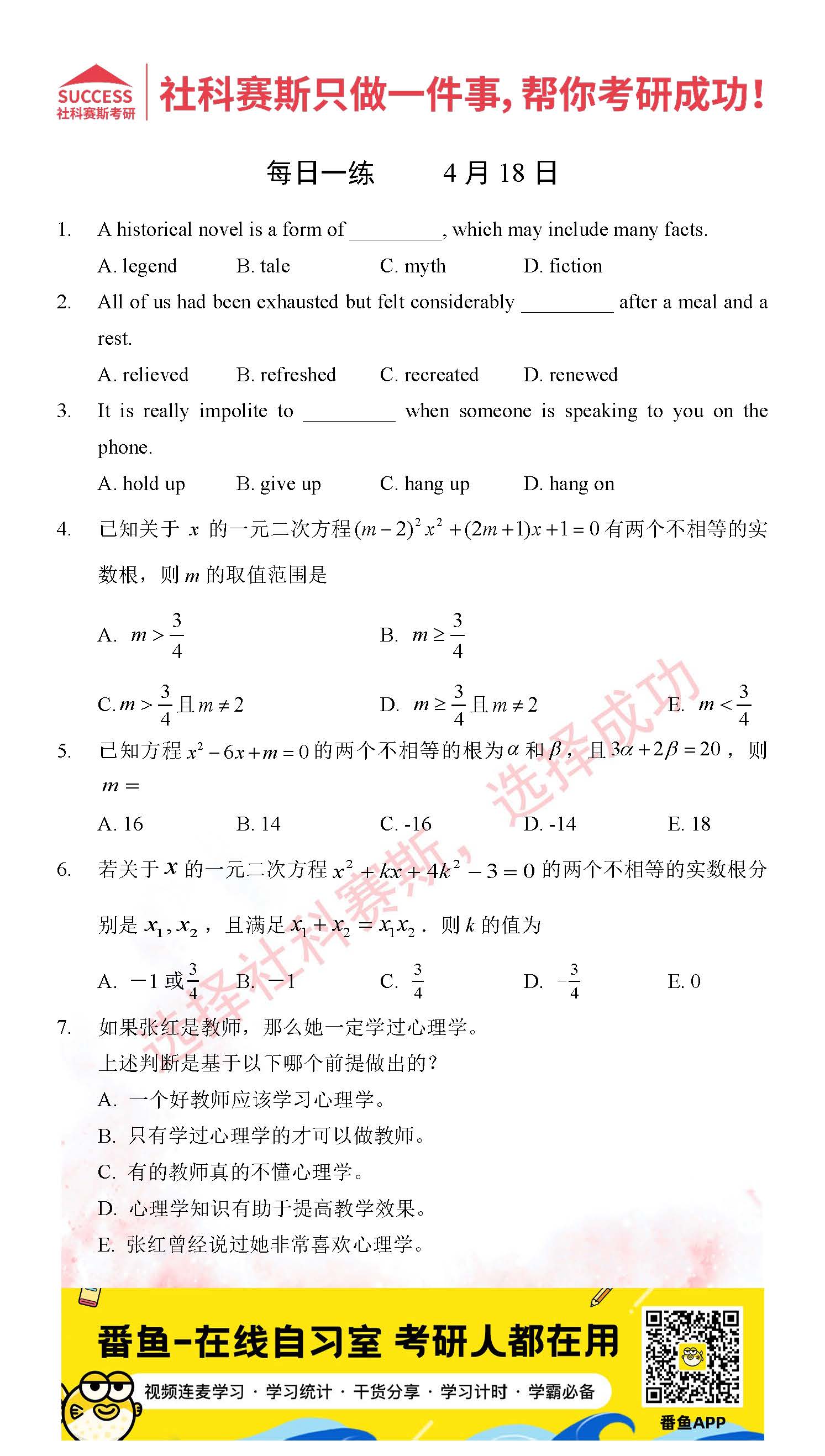 2022考研每日一練:4月18日管理類聯(lián)考每日一練及答案