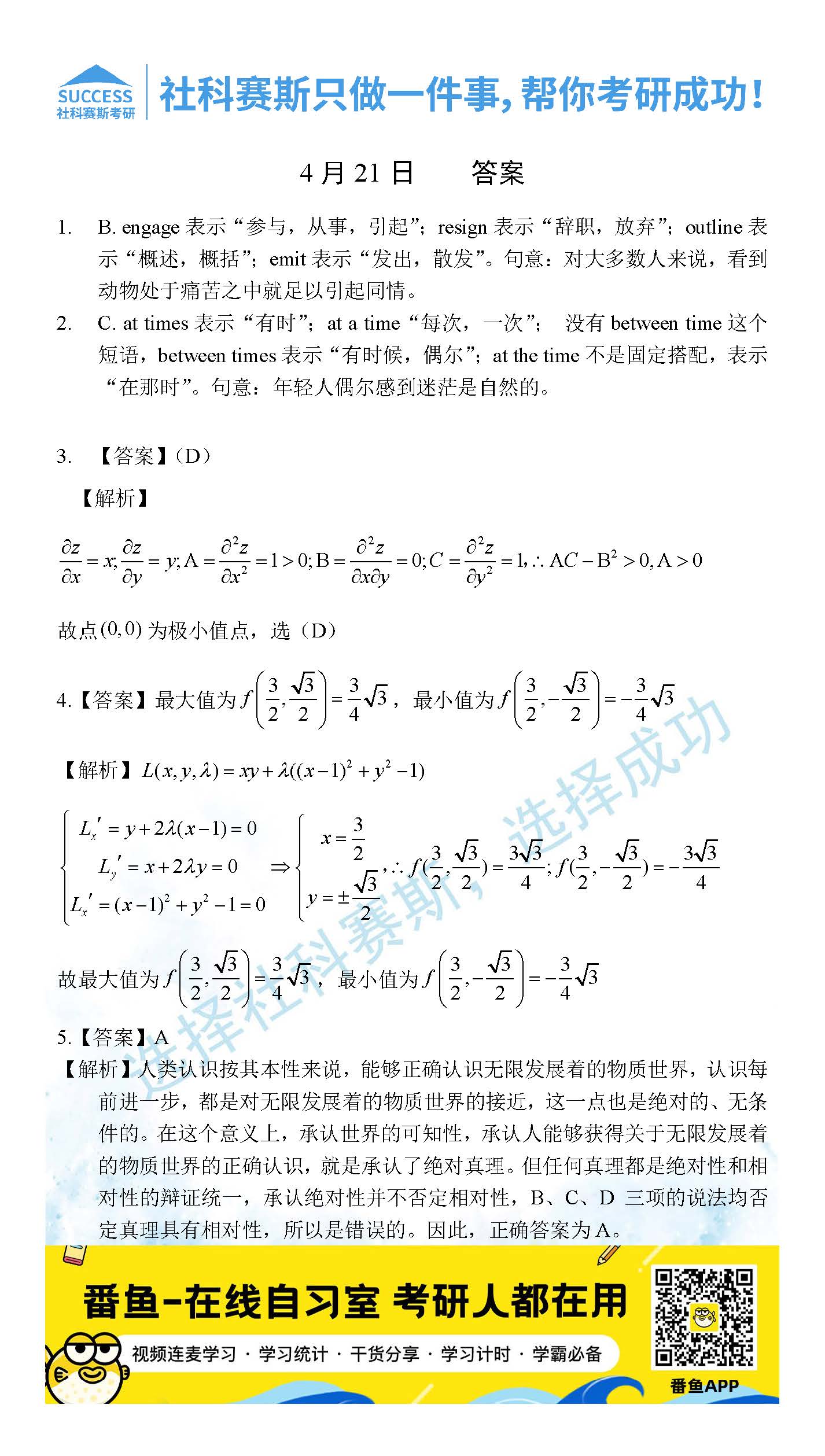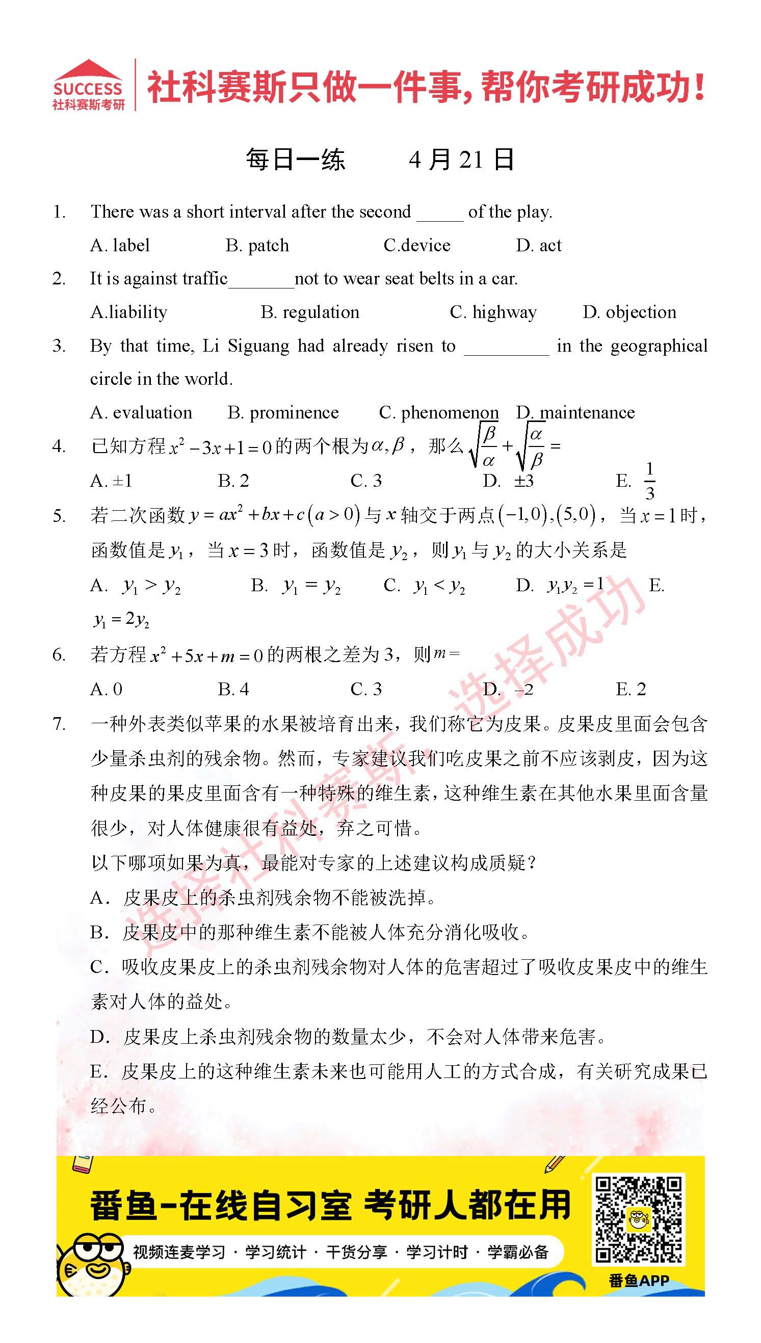 2022考研每日一練:4月21日管理類聯(lián)考每日一練及答案