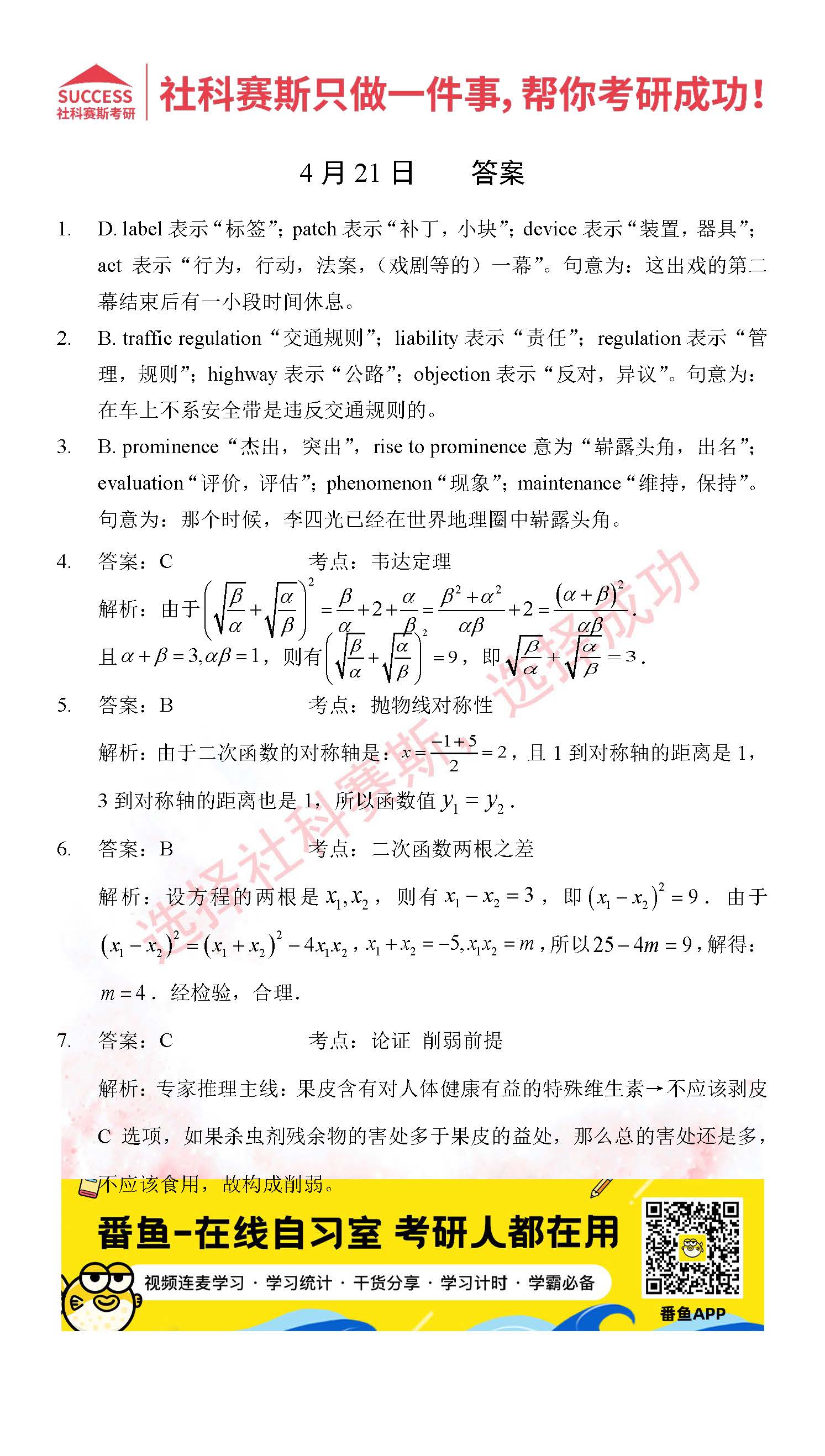 ?以上就是社科賽斯考研網(wǎng)小編為大家整理2022考研每日一練:4月21日管理類聯(lián)考每日一練及答案的全部內(nèi)容,希望各位考生堅持利用起來,更多每日一練內(nèi)容請持續(xù)關(guān)注社科賽斯考研網(wǎng)。