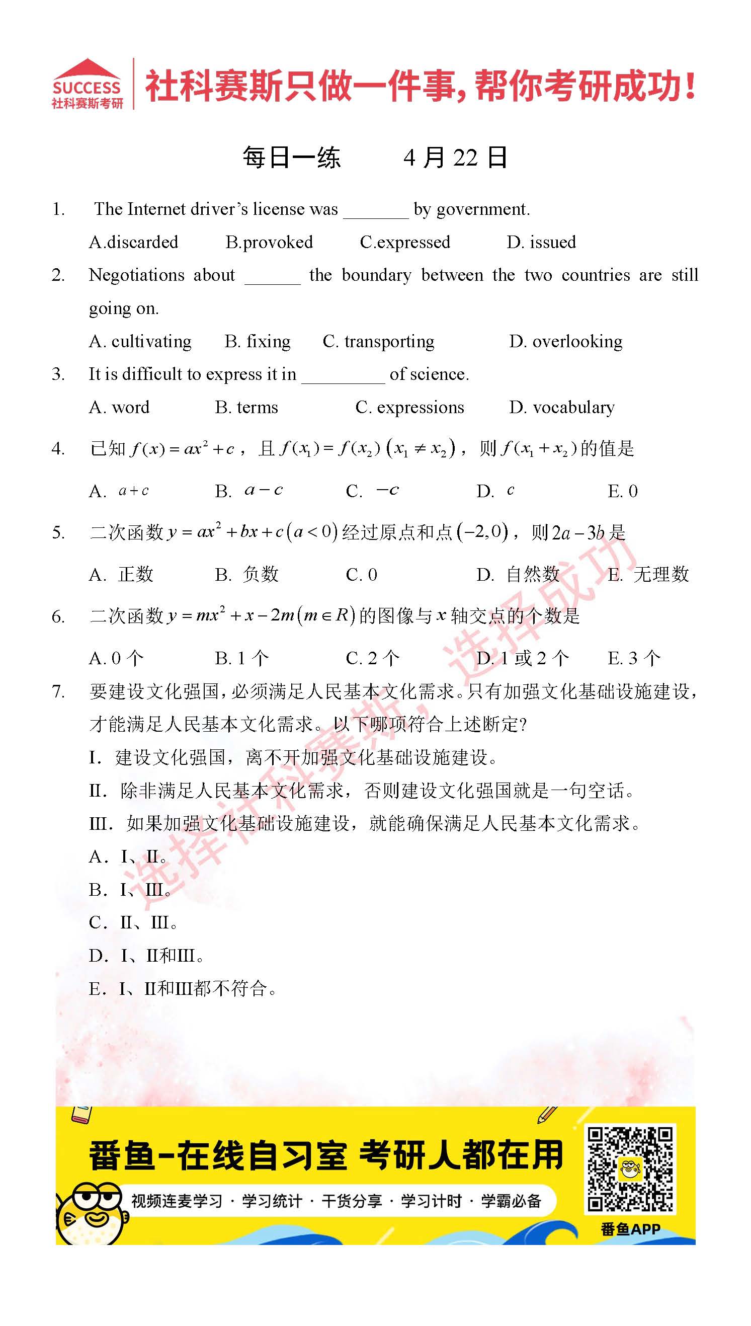 2022考研每日一練:4月22日管理類聯(lián)考每日一練及答案