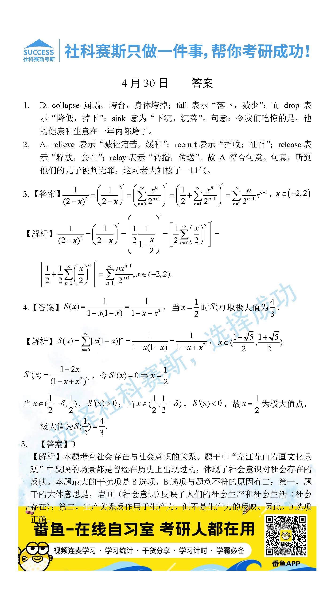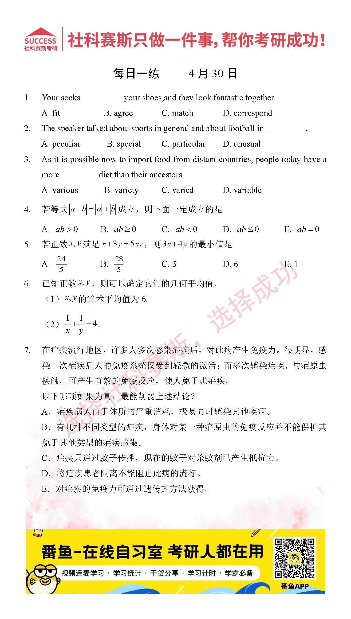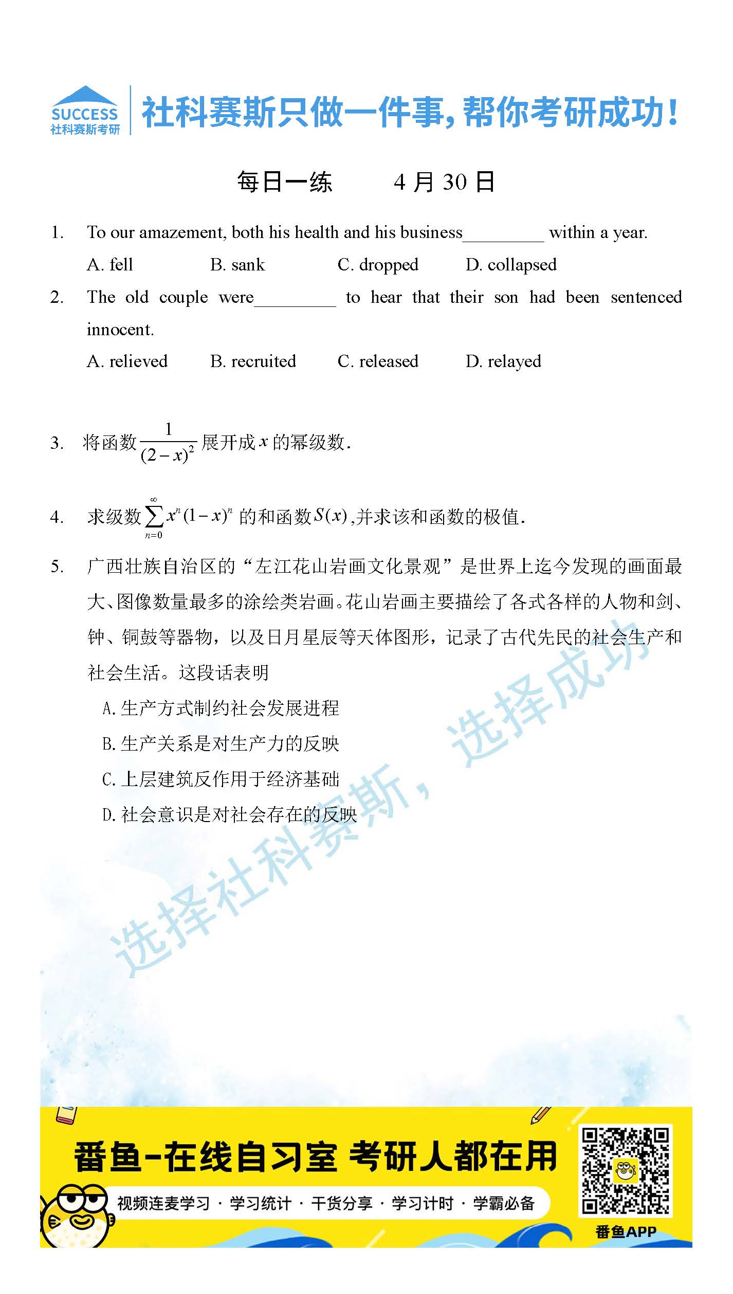 以上就是社科賽斯考研網(wǎng)小編為大家整理2022考研每日一練:4月30日管理類聯(lián)考每日一練及答案的全部內(nèi)容,希望各位考生堅持利用起來,更多每日一練內(nèi)容請持續(xù)關(guān)注社科賽斯考研網(wǎng)。