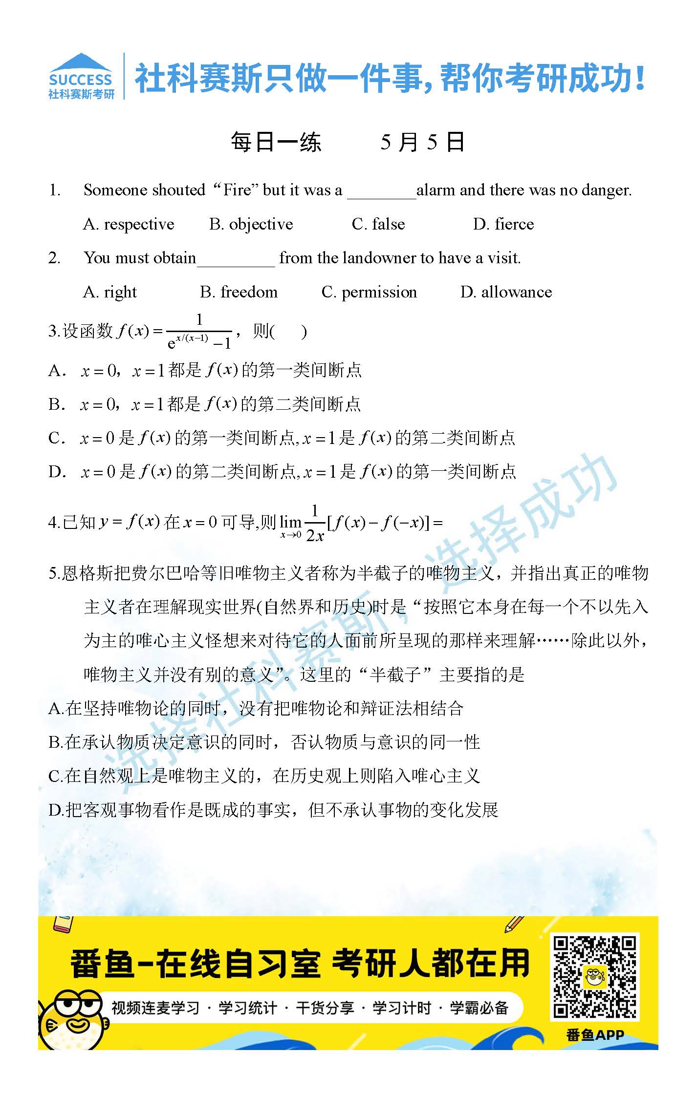 2022考研每日一練:5月5日管理類聯(lián)考每日一練及答案