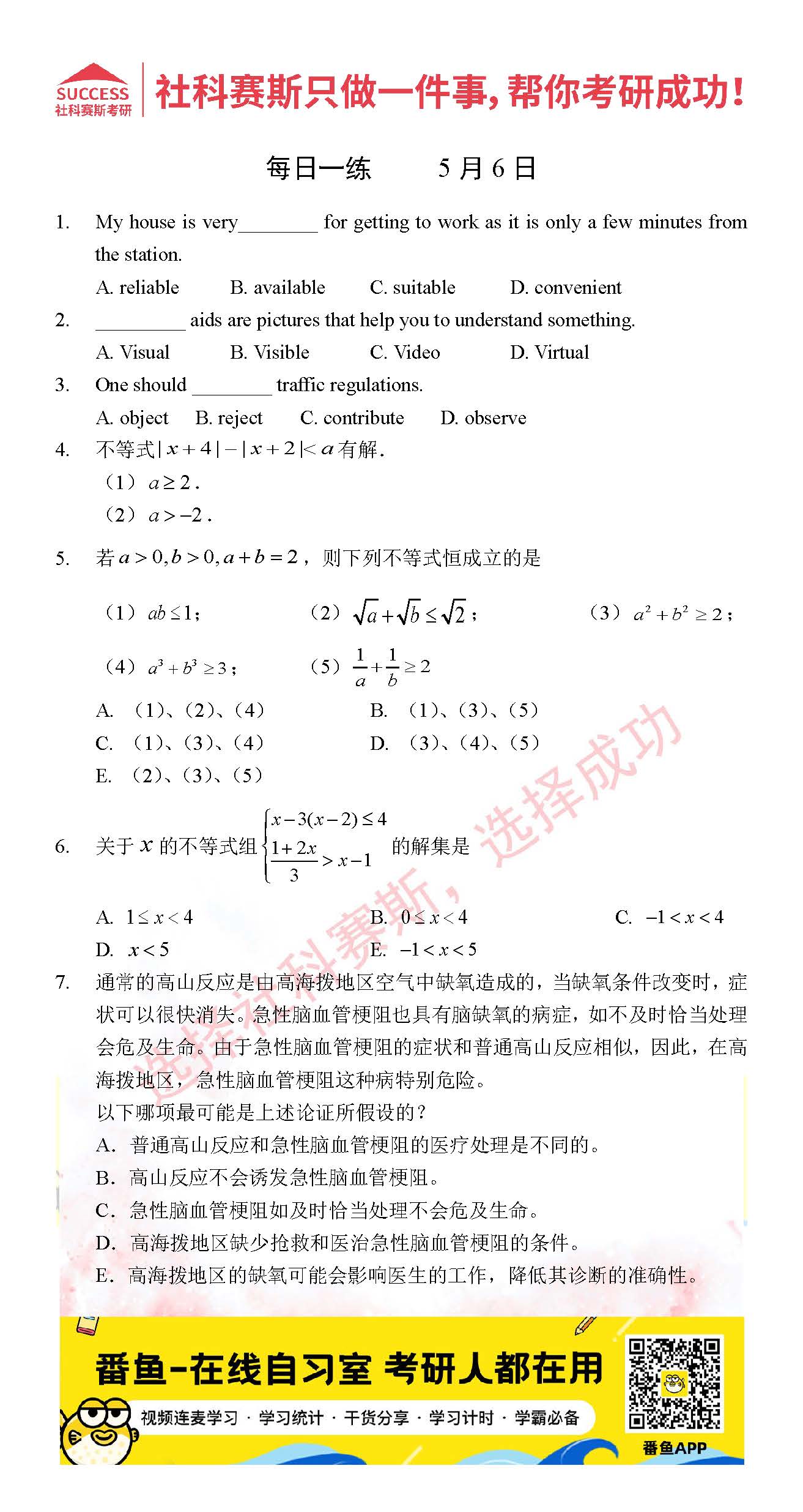 2022考研每日一練:5月6日管理類聯(lián)考每日一練及答案