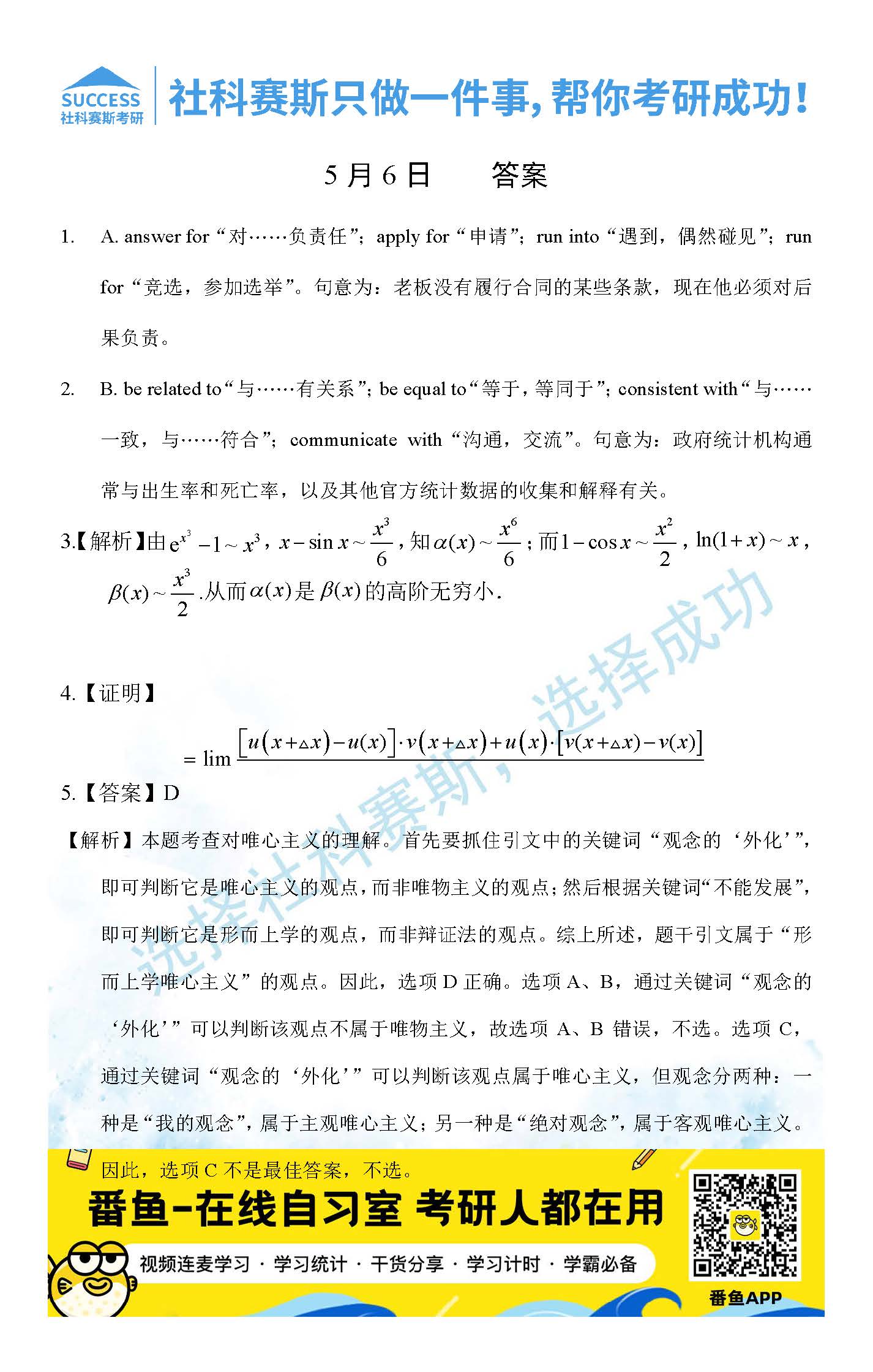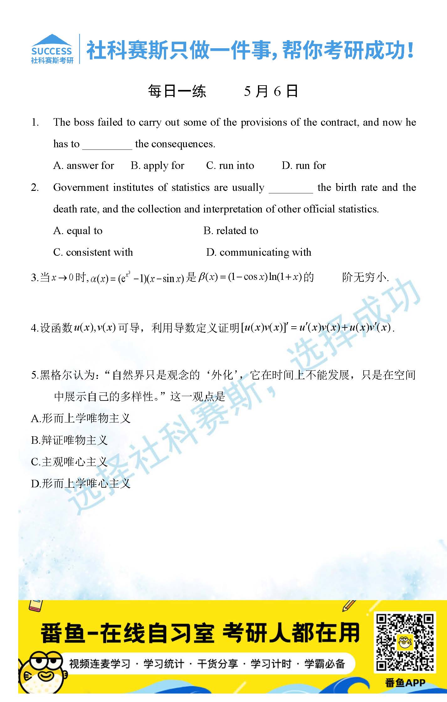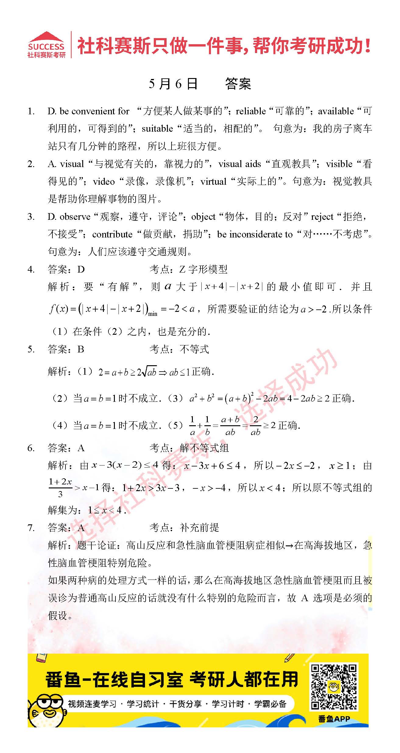 以上就是社科賽斯考研網(wǎng)小編為大家整理2022考研每日一練:5月6日管理類聯(lián)考每日一練及答案的全部內(nèi)容,希望各位考生堅(jiān)持利用起來,更多每日一練內(nèi)容請(qǐng)持續(xù)關(guān)注社科賽斯考研網(wǎng)