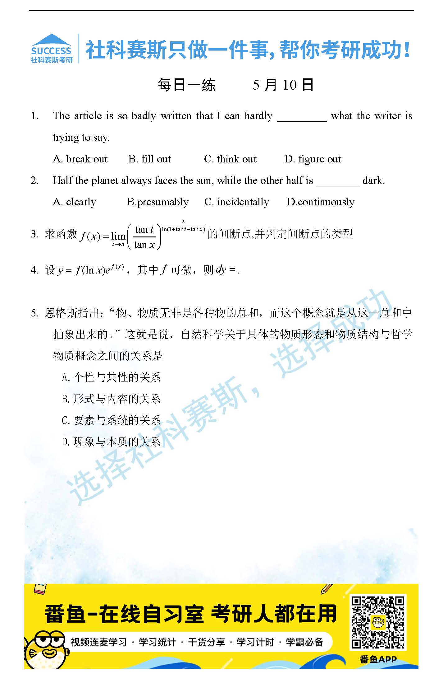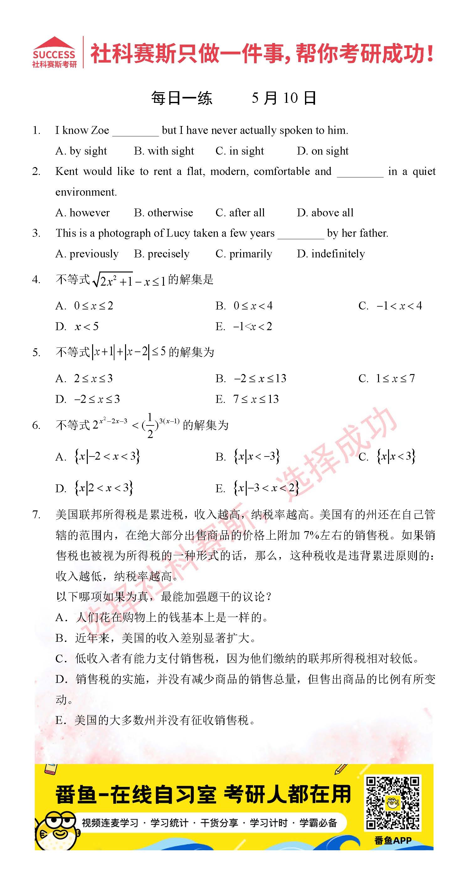 2022考研每日一練:5月10日管理類聯(lián)考每日一練及答案