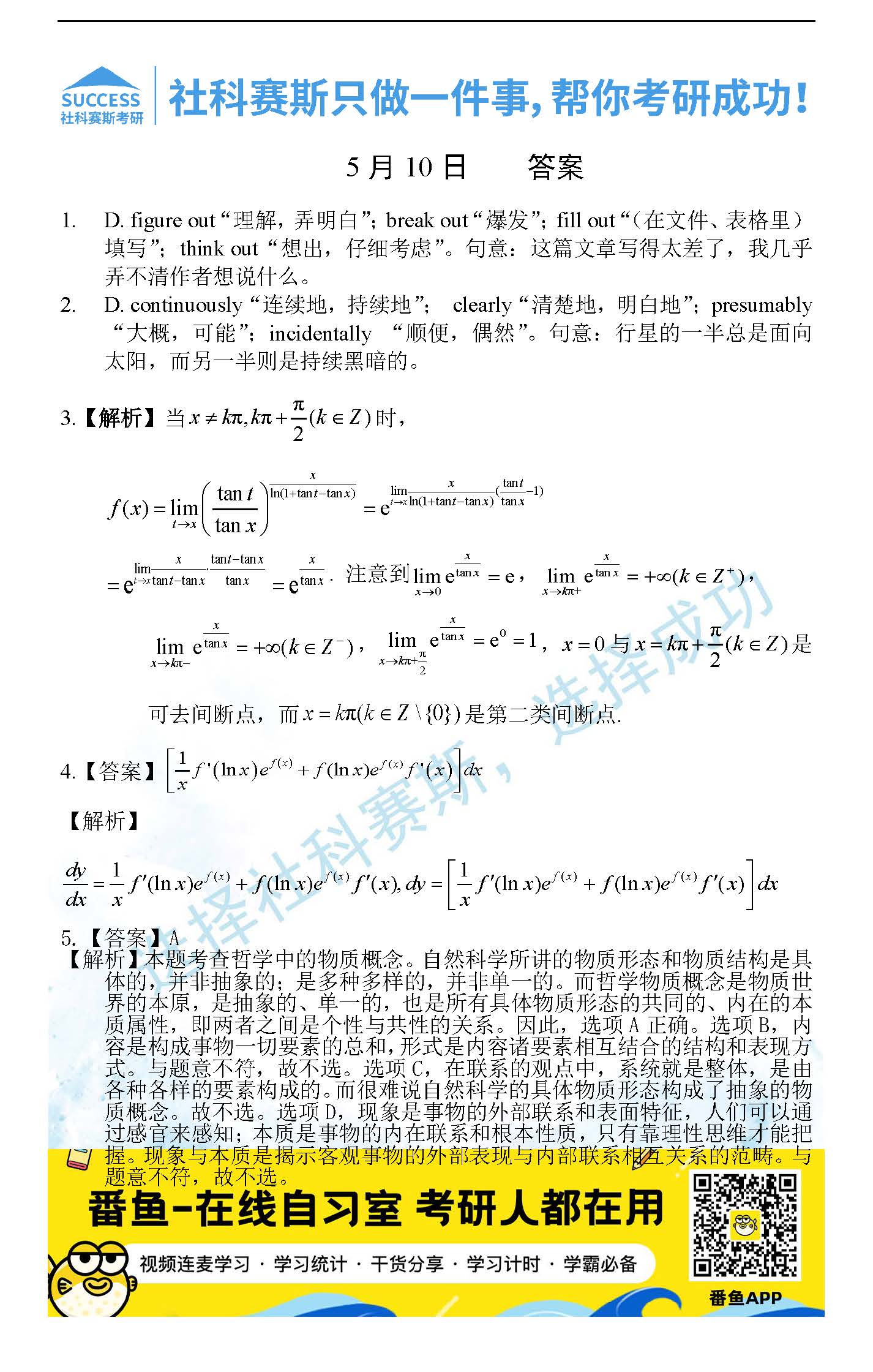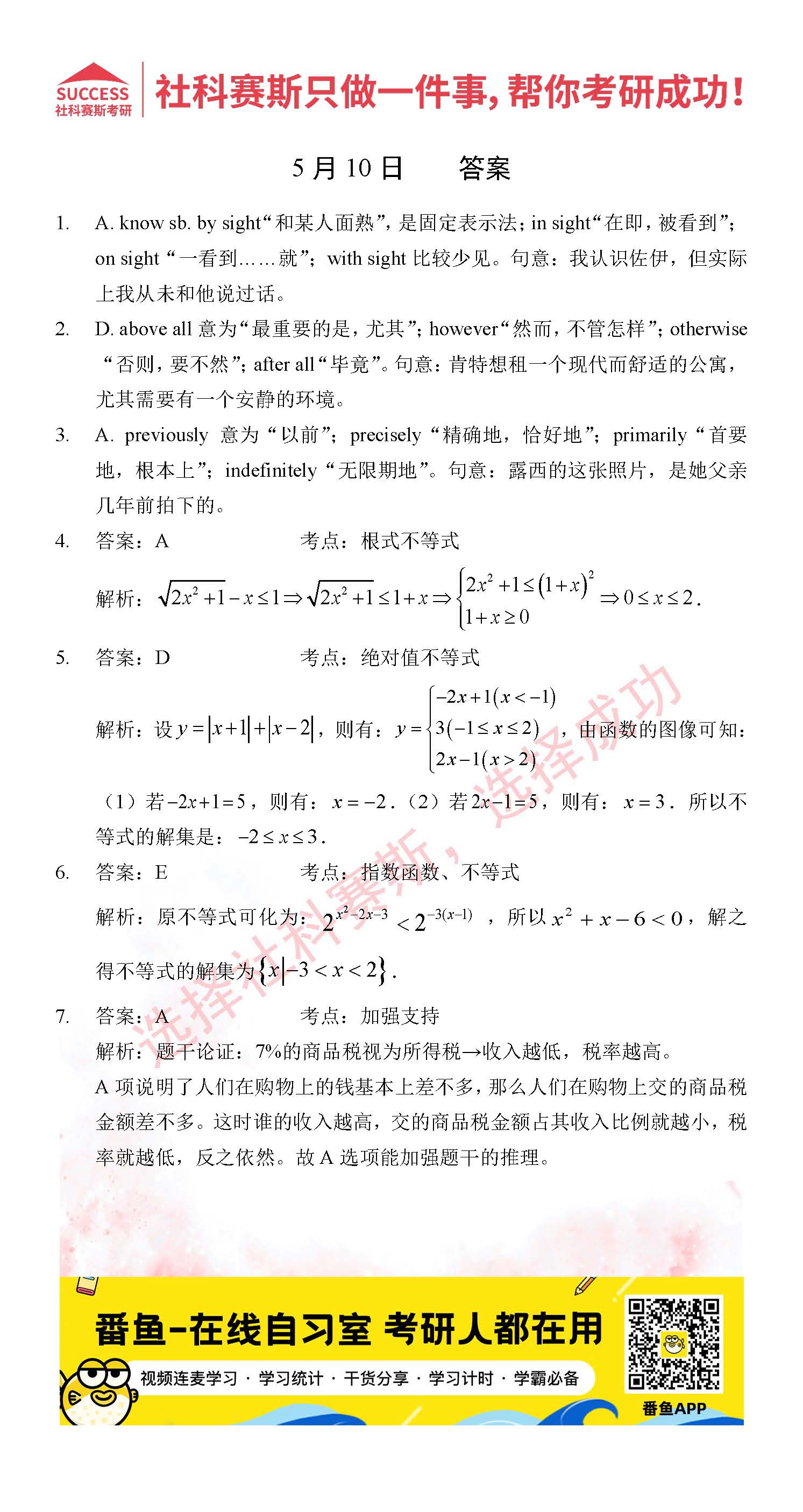 以上就是社科賽斯考研網(wǎng)小編為大家整理2022考研每日一練:5月10日管理類聯(lián)考每日一練及答案的全部?jī)?nèi)容,希望各位考生堅(jiān)持利用起來(lái),更多每日一練內(nèi)容請(qǐng)持續(xù)關(guān)注社科賽斯考研網(wǎng)