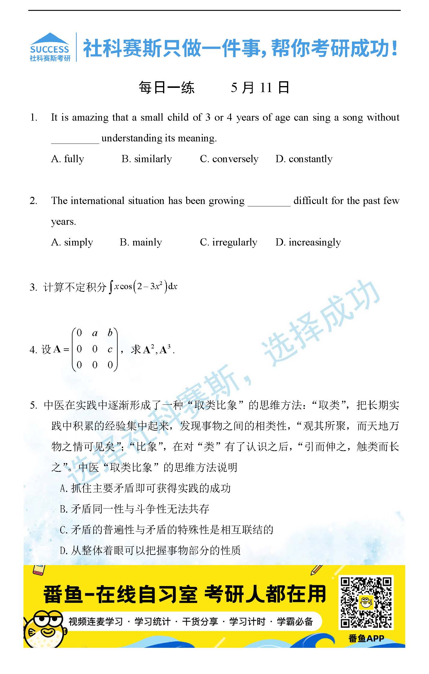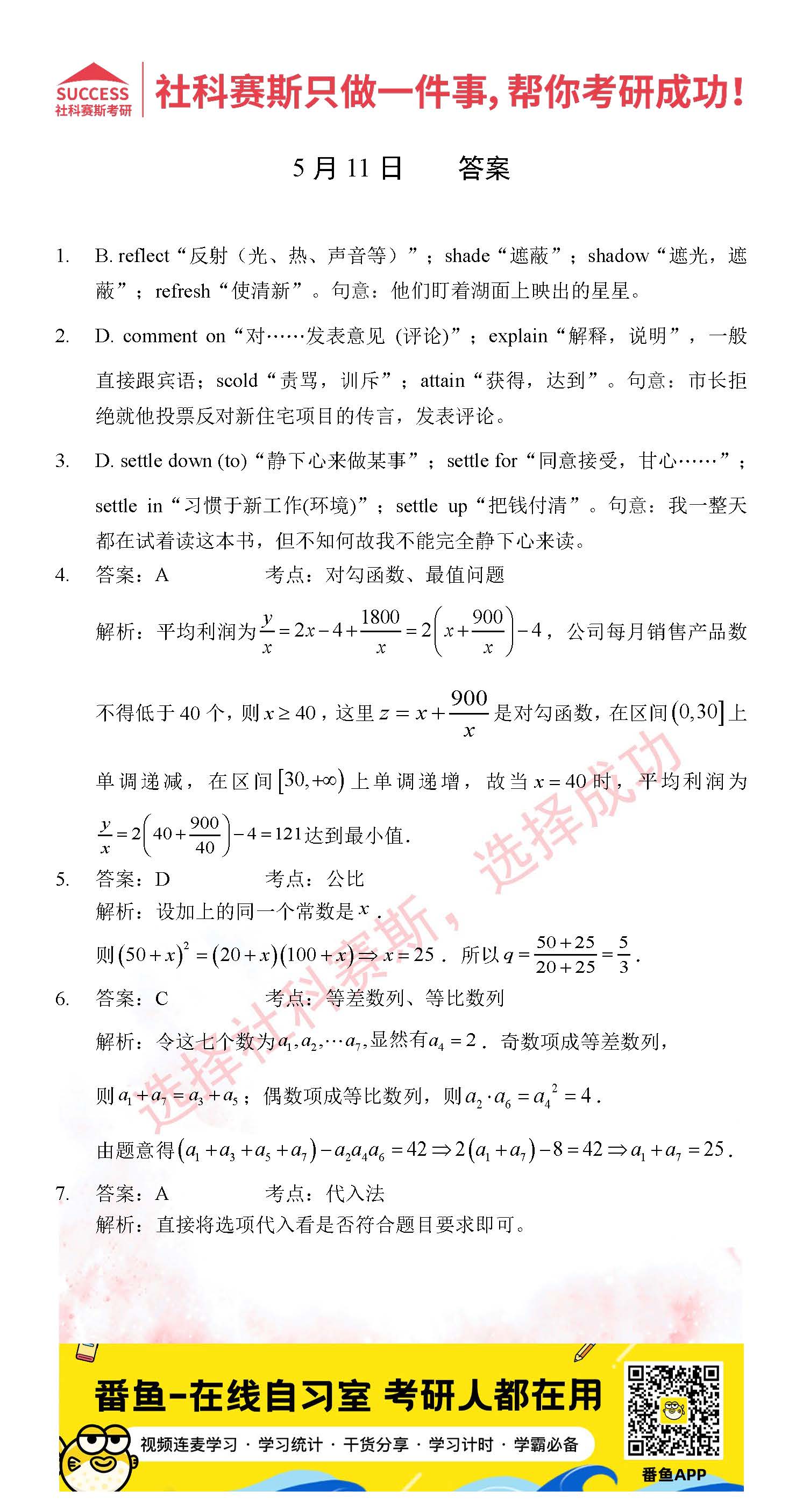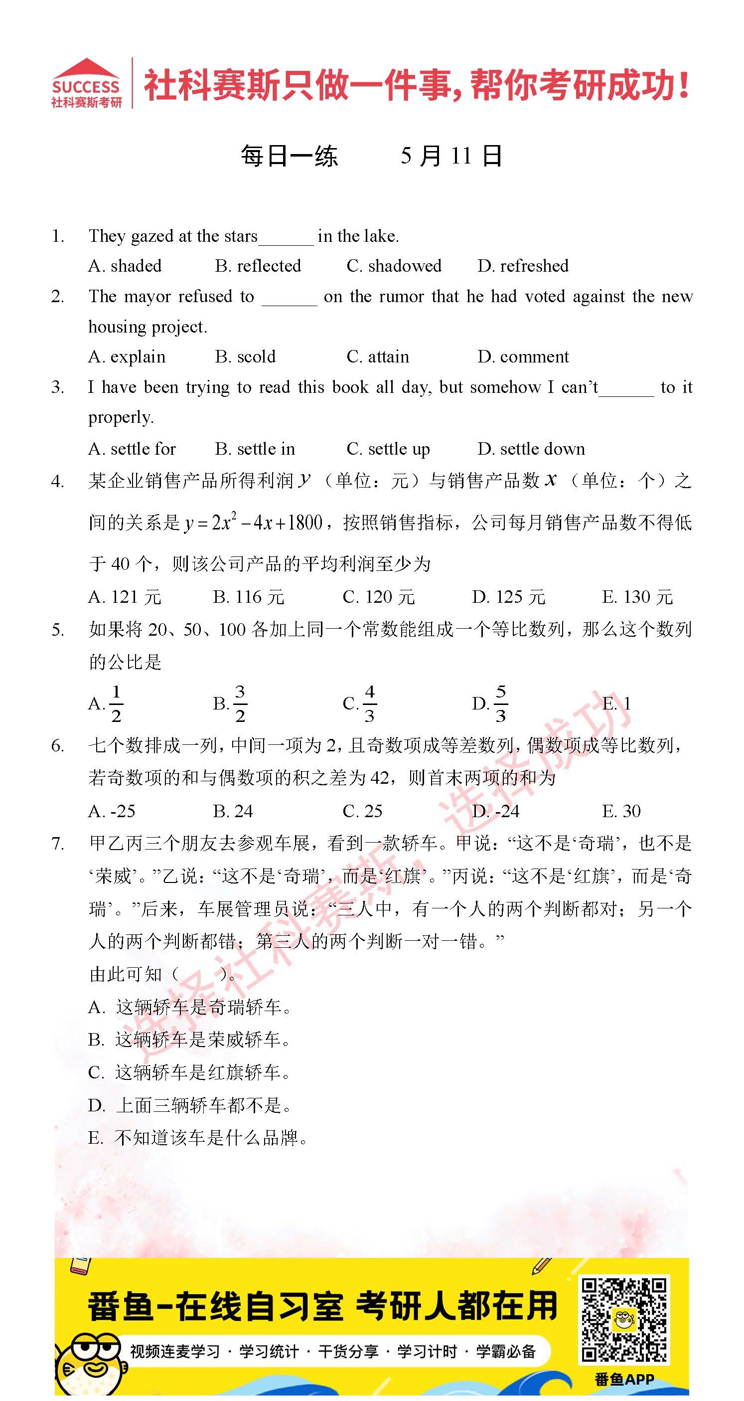 2022考研每日一練:5月11日管理類聯(lián)考每日一練及答案