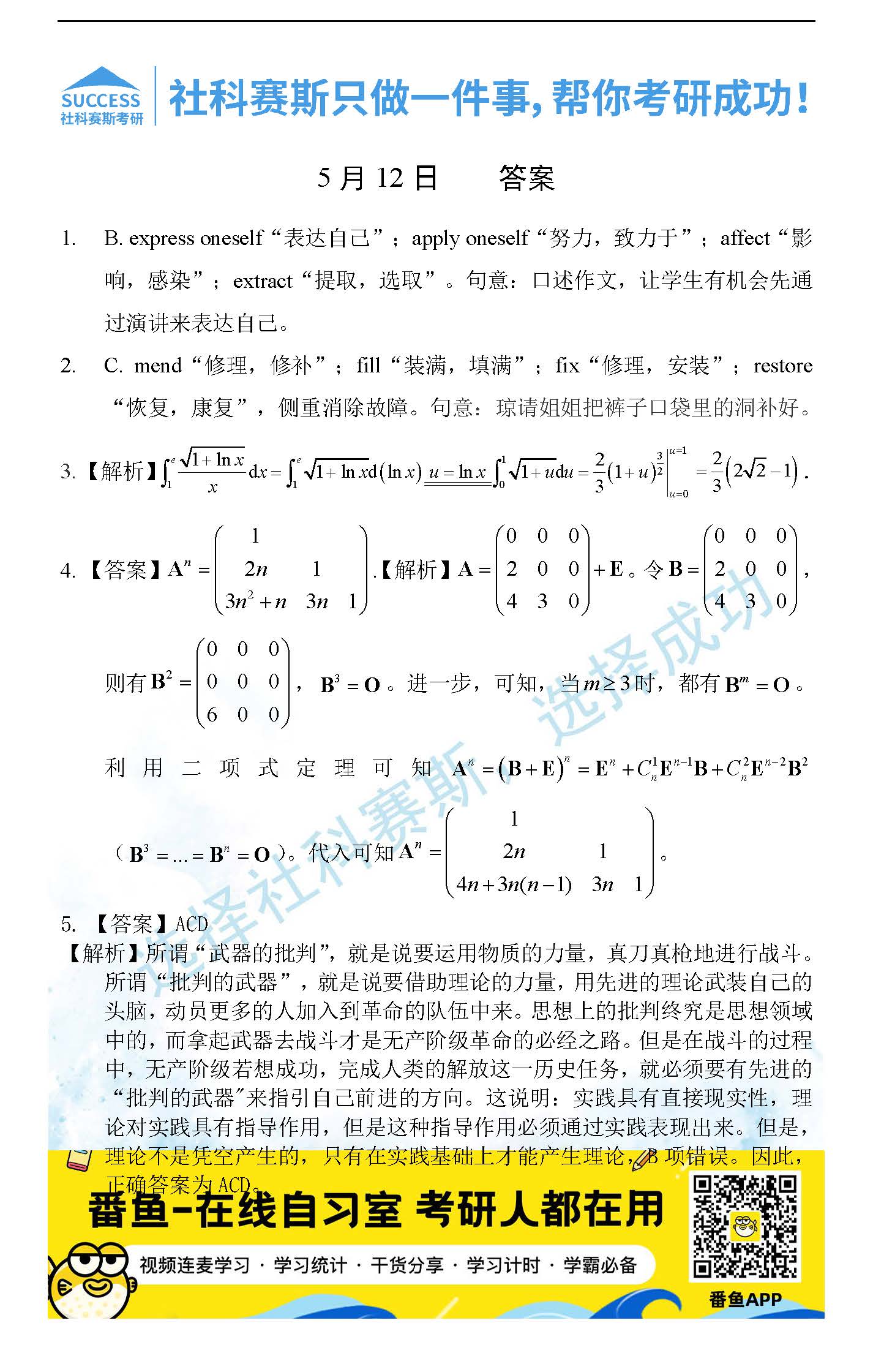 2022考研每日一練:5月12日管理類聯(lián)考每日一練及答案