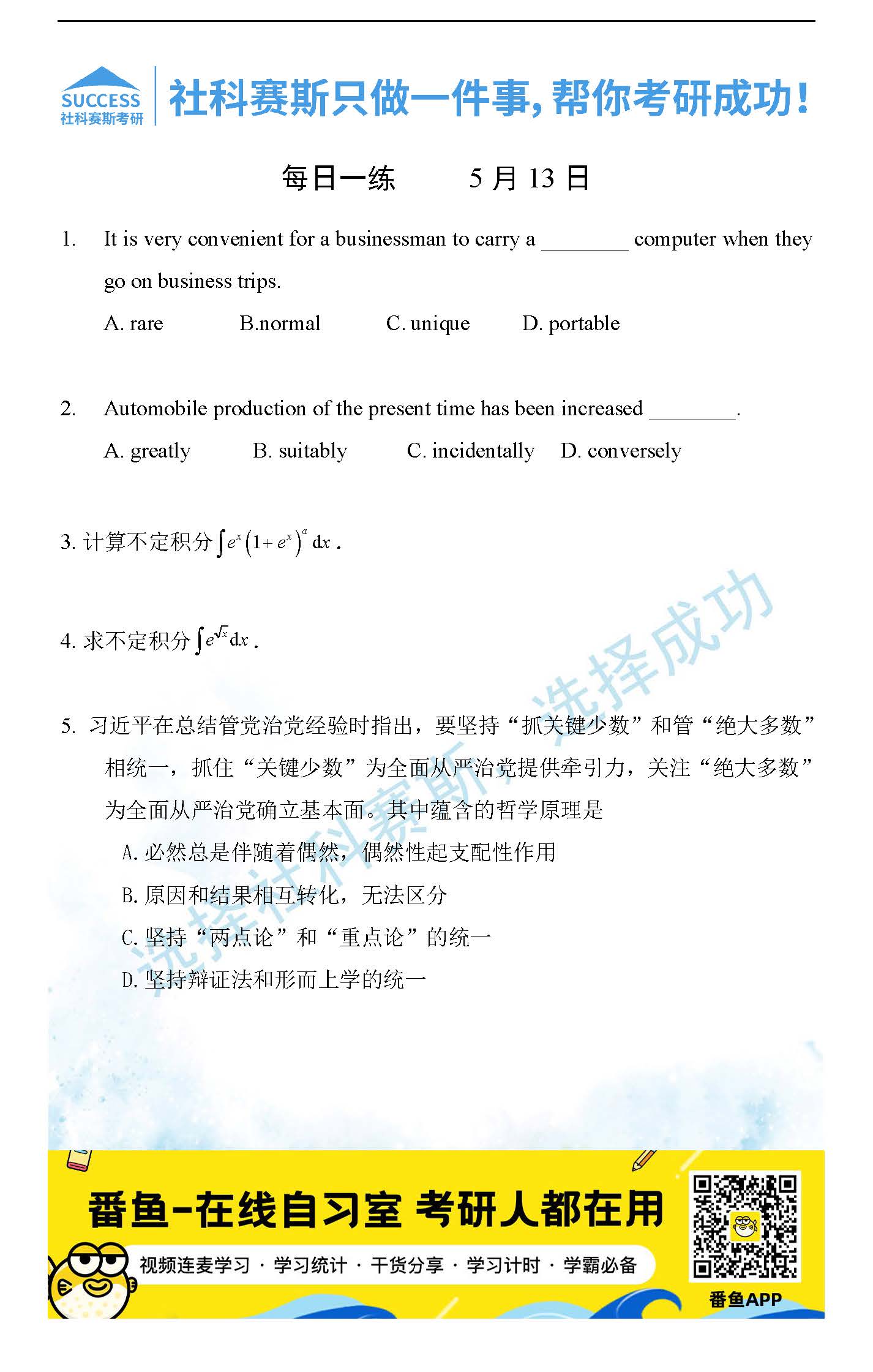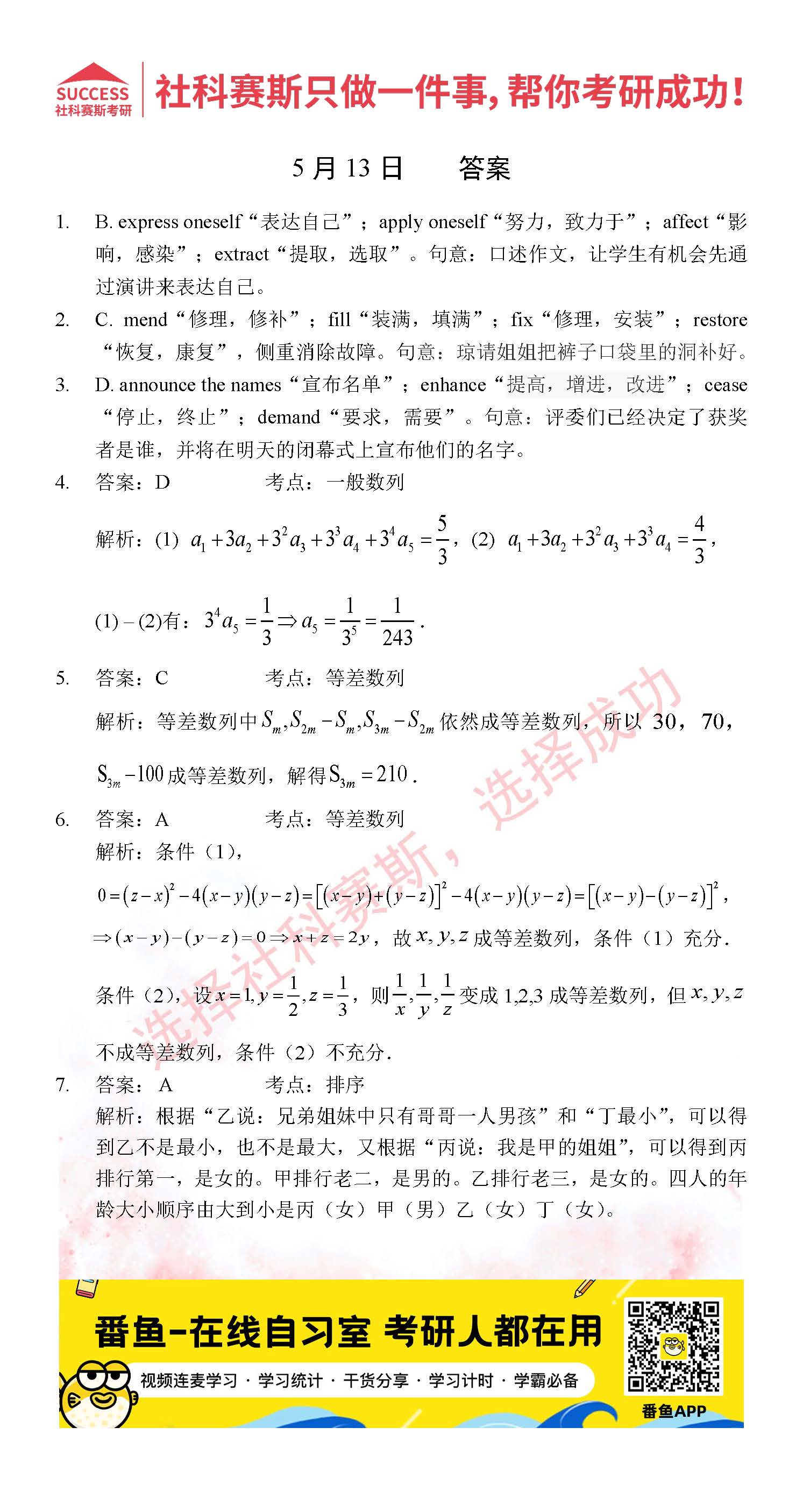 2022考研每日一練:5月13日管理類聯(lián)考每日一練及答案