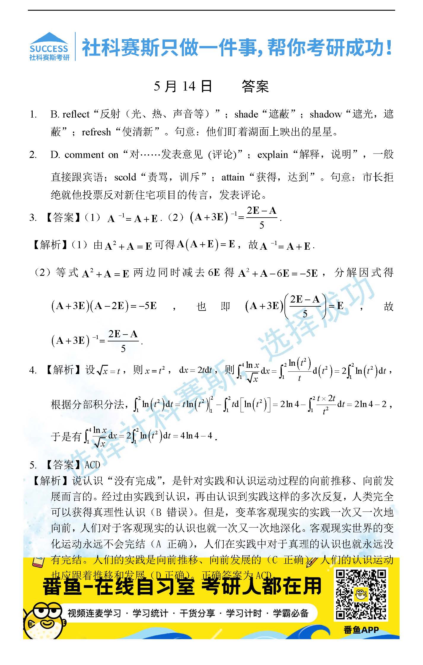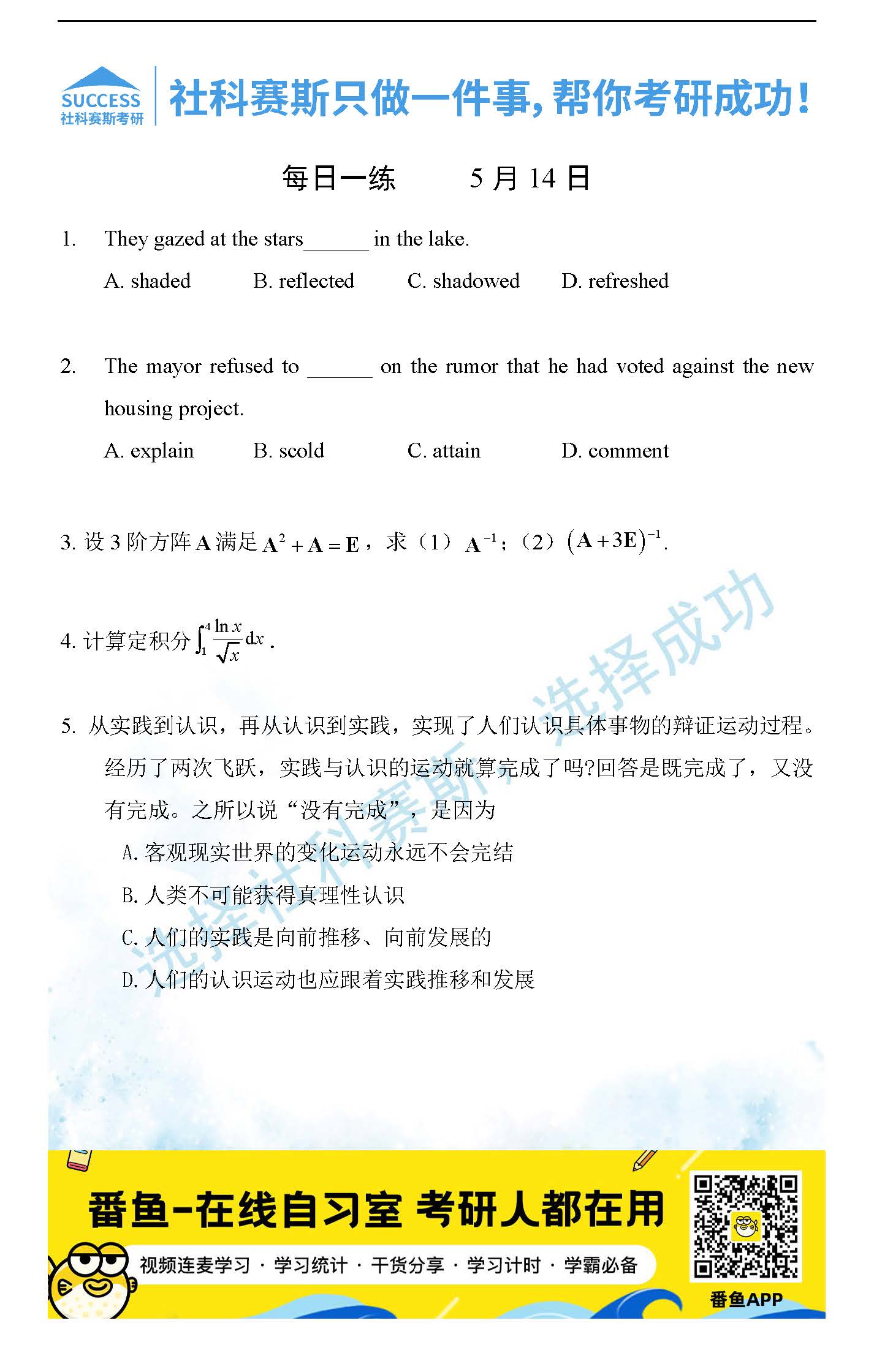 當(dāng)前位置: 考研每日一練 > 2022考研每日一練:5月14日管理類(lèi)聯(lián)考每日一練及答案